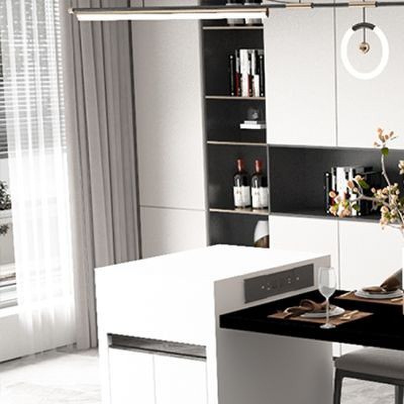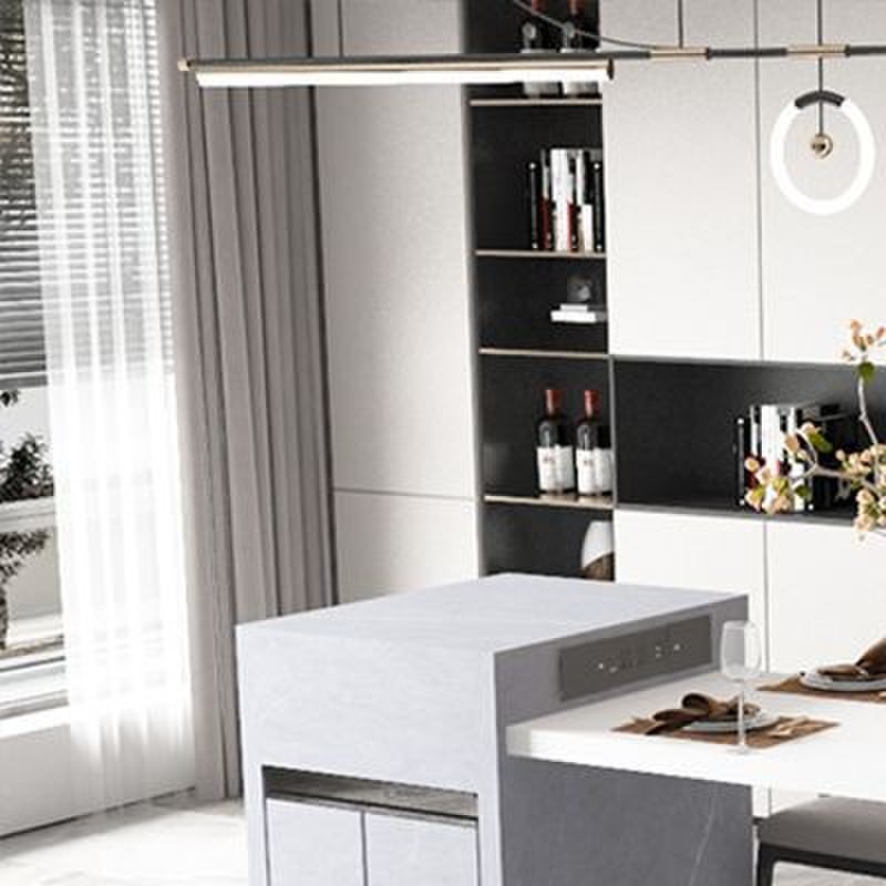 岩板伸缩岛台餐桌一体小户型厨房隔断灰色现代隐藏式拉伸岩板饭桌