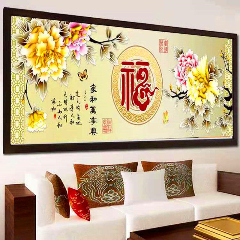 串珠子十字绣客厅满绣全珠绣家和万事兴彩珠福字穿珠丝线牡丹圆珠