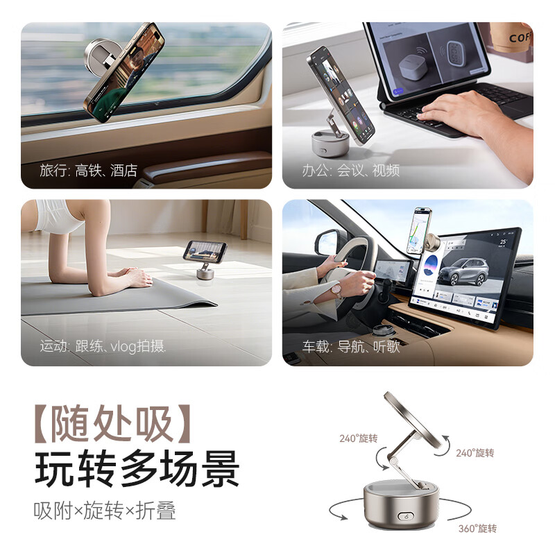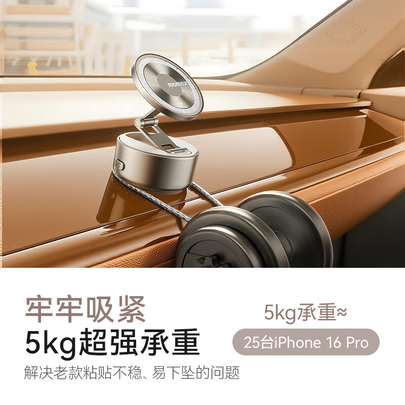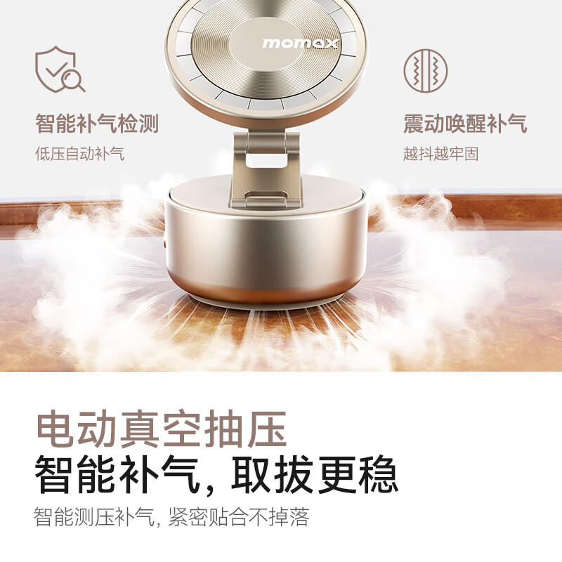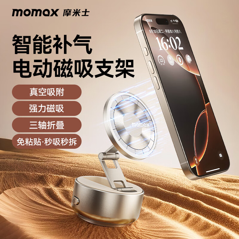 MOMAX摩米士手机支架真空磁吸支架吸附电动吸盘汽车中控台车载导航桌面固定追剧支撑架可折叠旋转2025新款