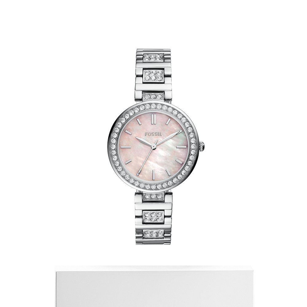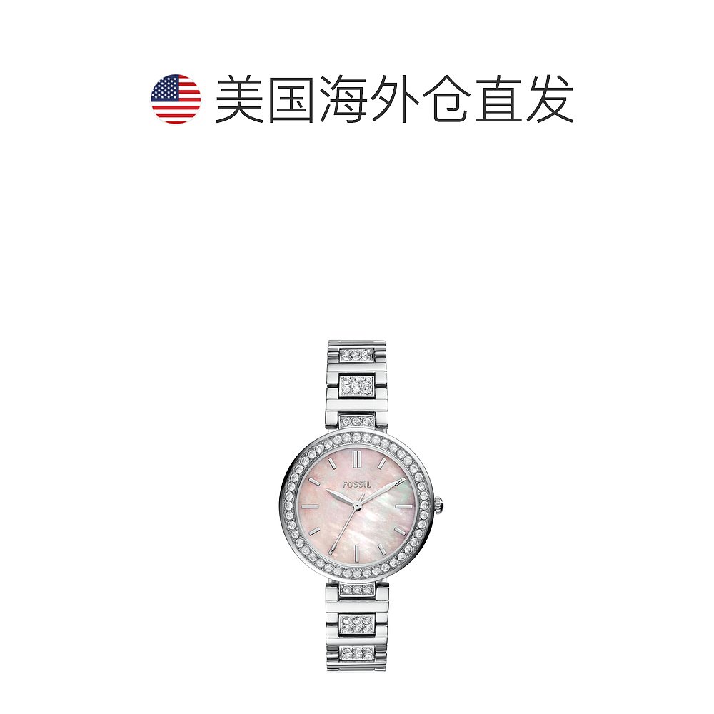 自营 Fossil女式Karli三手银色合金手表-银色 美国奥莱直发化石