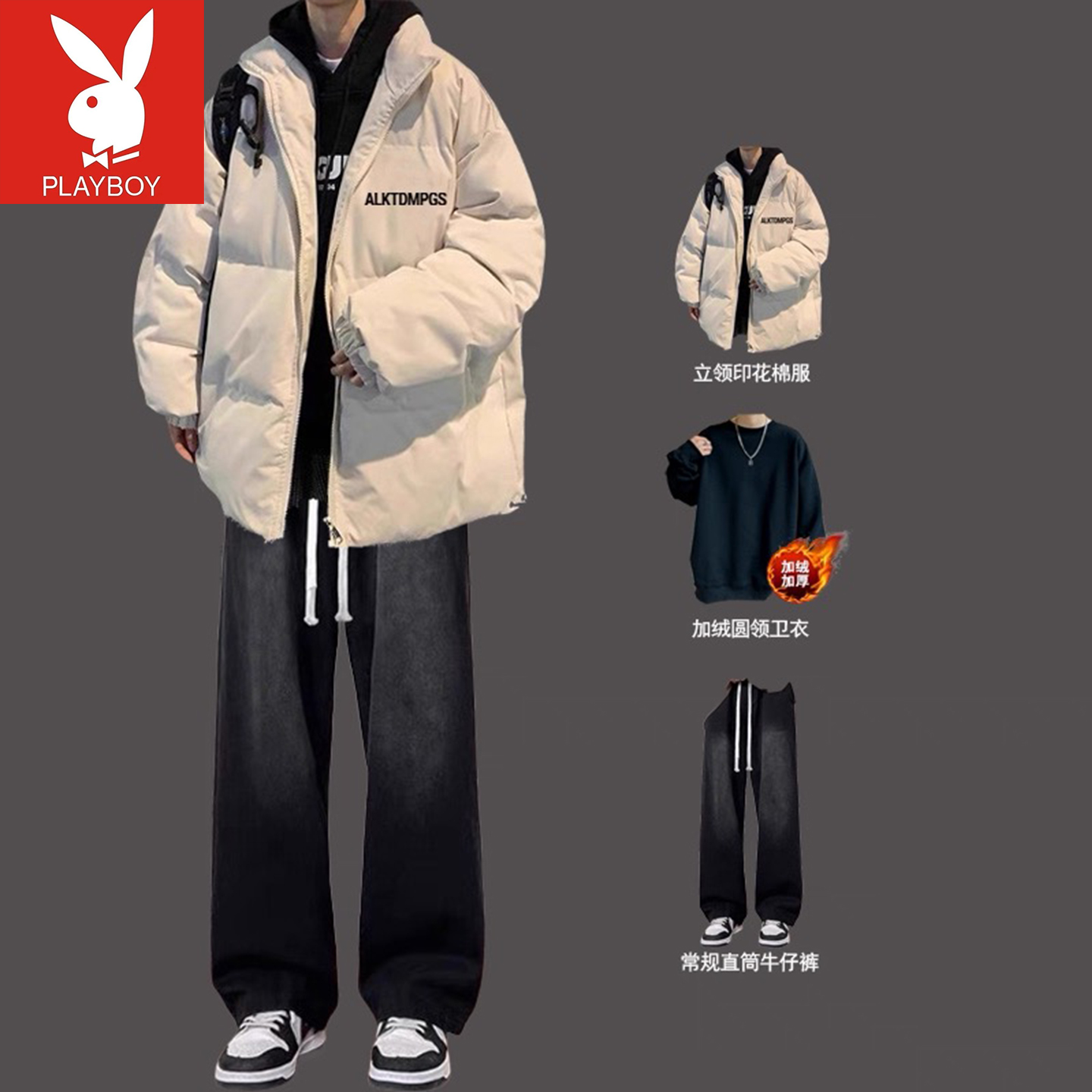 花花公子棉衣外套男士秋冬季款潮牌宽松加厚保暖棉服男生面包棉袄