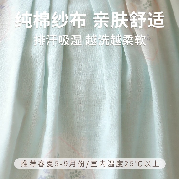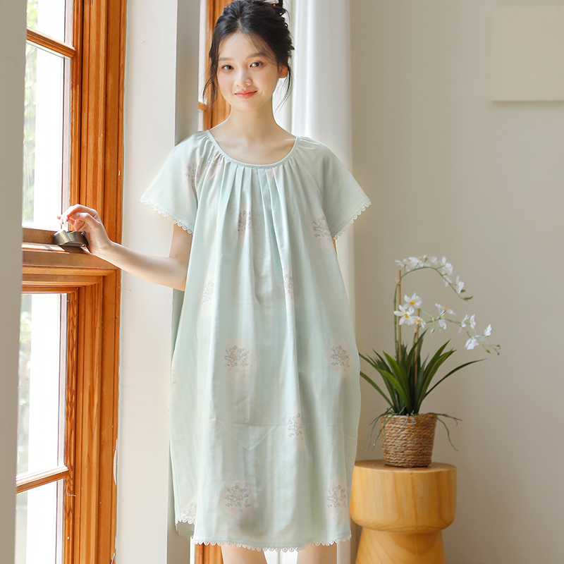 夏季短袖全棉睡裙女新款大码宽松睡衣裙甜美印花双层纱薄款家居裙