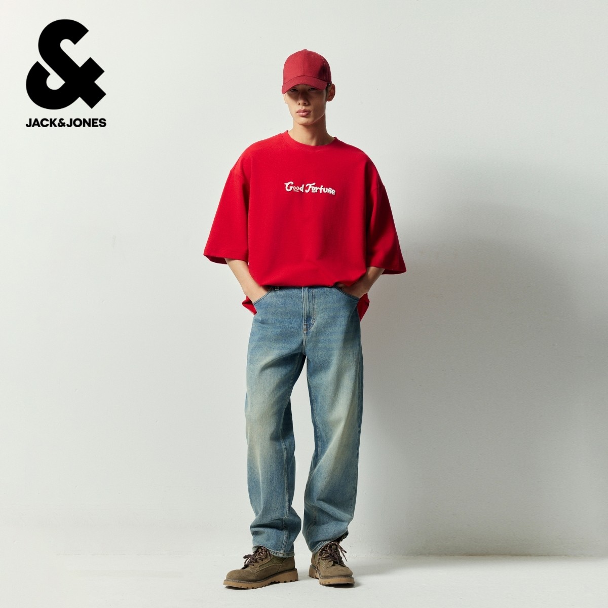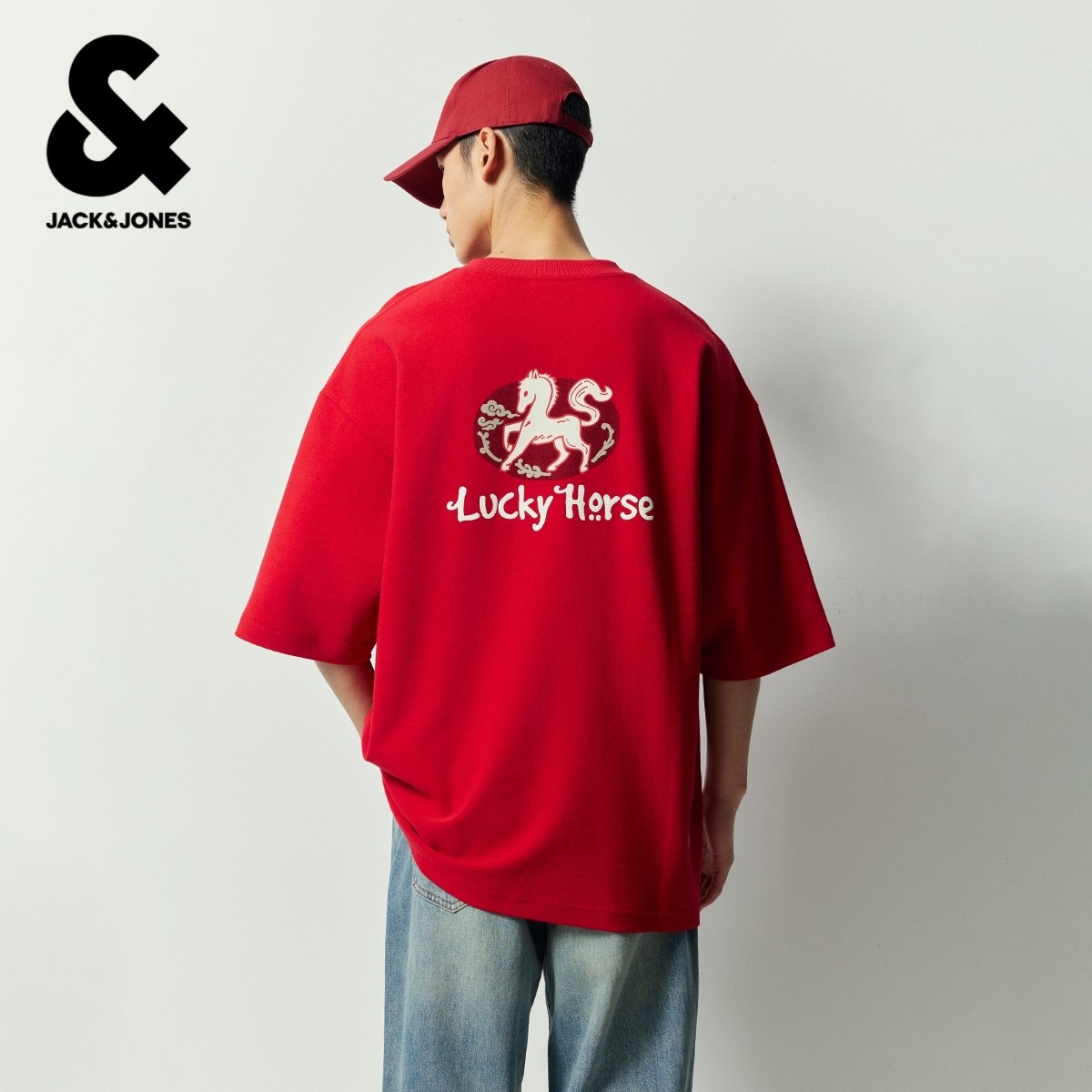杰克琼斯男装春季马年新年款舒适细毛巾布休闲宽松圆领短袖T恤