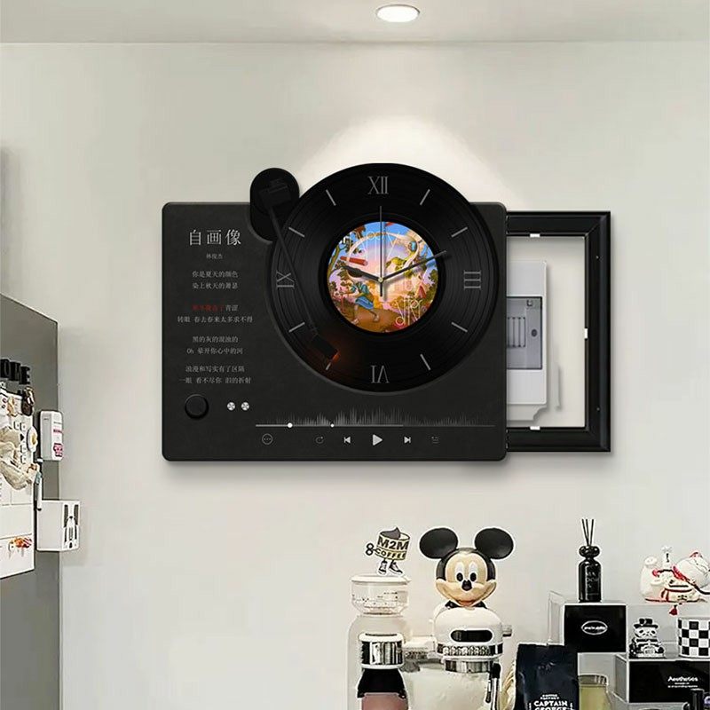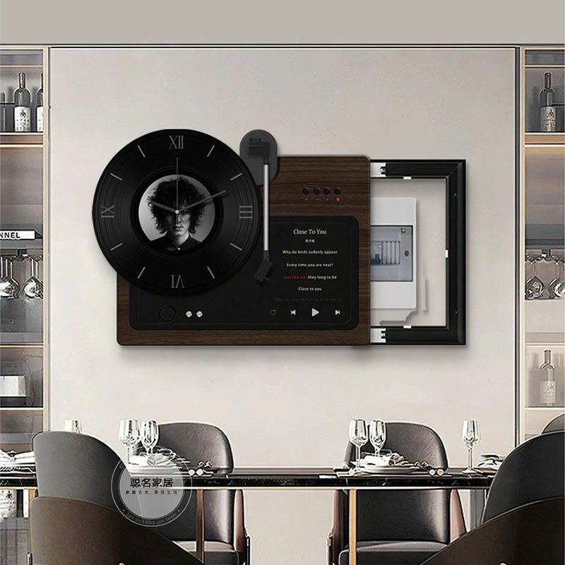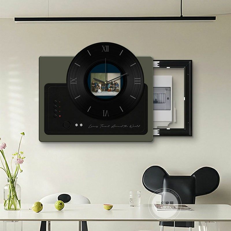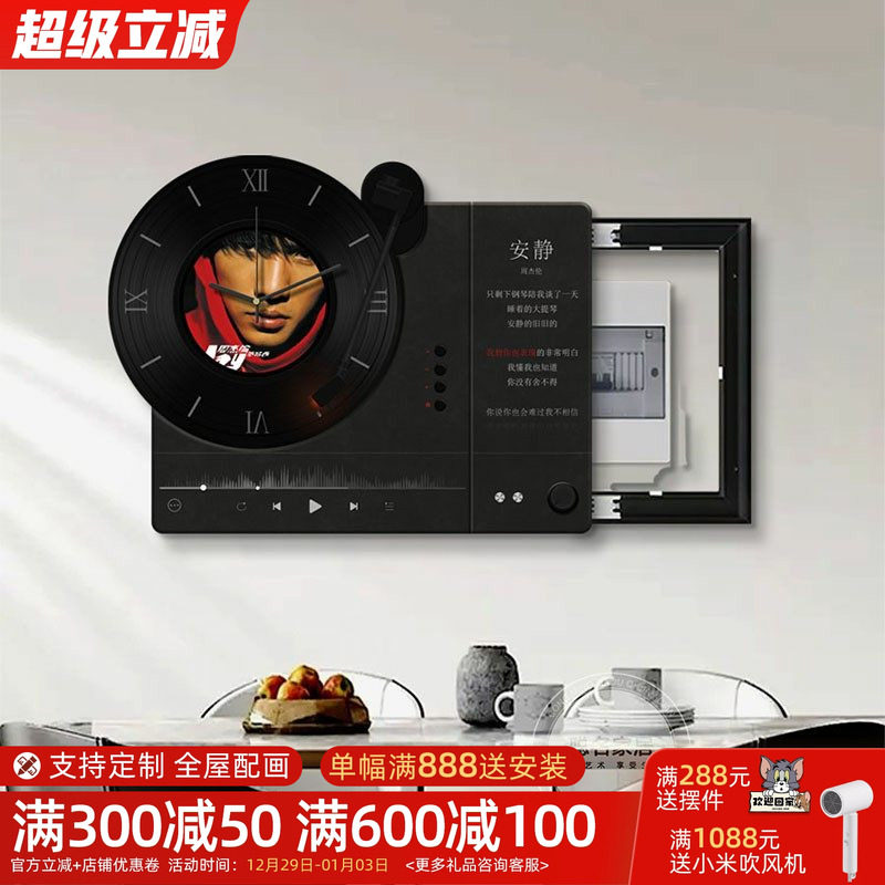 黑胶唱片电表箱装饰画高级感配电箱钟表挂画弱电箱时钟创意餐厅画
