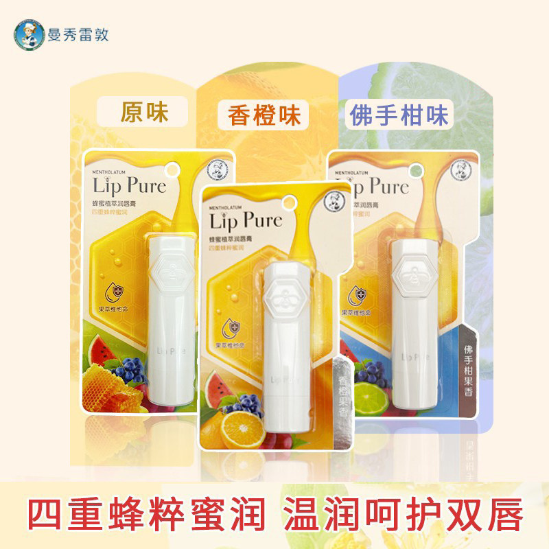 曼秀雷敦蜂蜜植萃水果佛手柑润唇膏女呵护保湿滋润防干裂无色4g