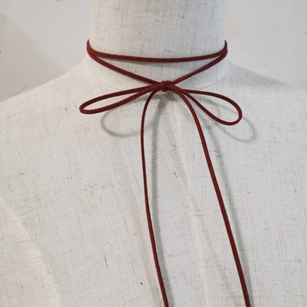 简约黑色长款系带麂皮绳女士夏季颈绳绑带蝴蝶结锁骨项链叠戴双层