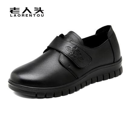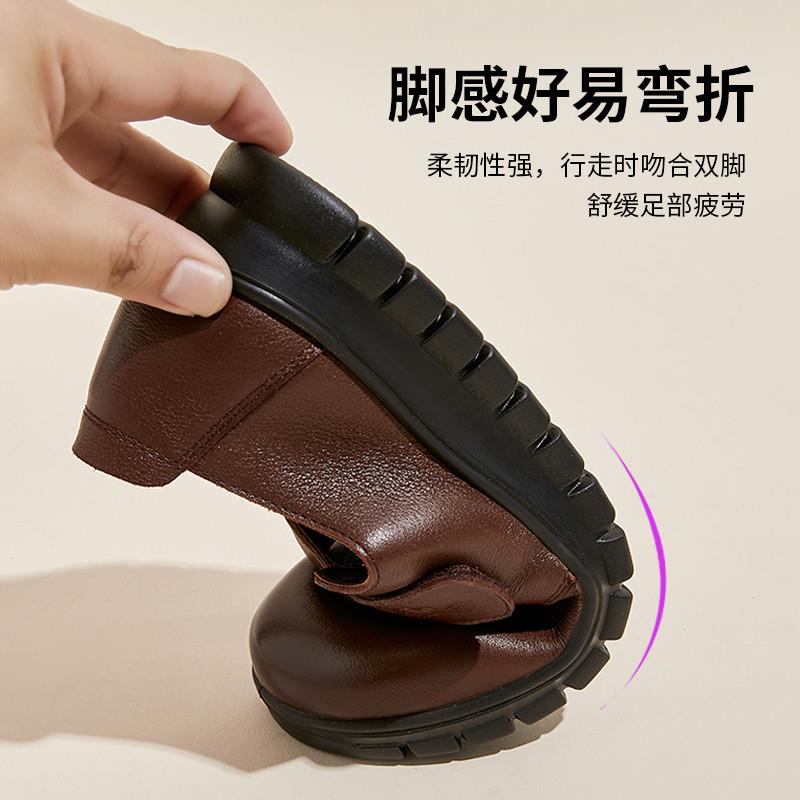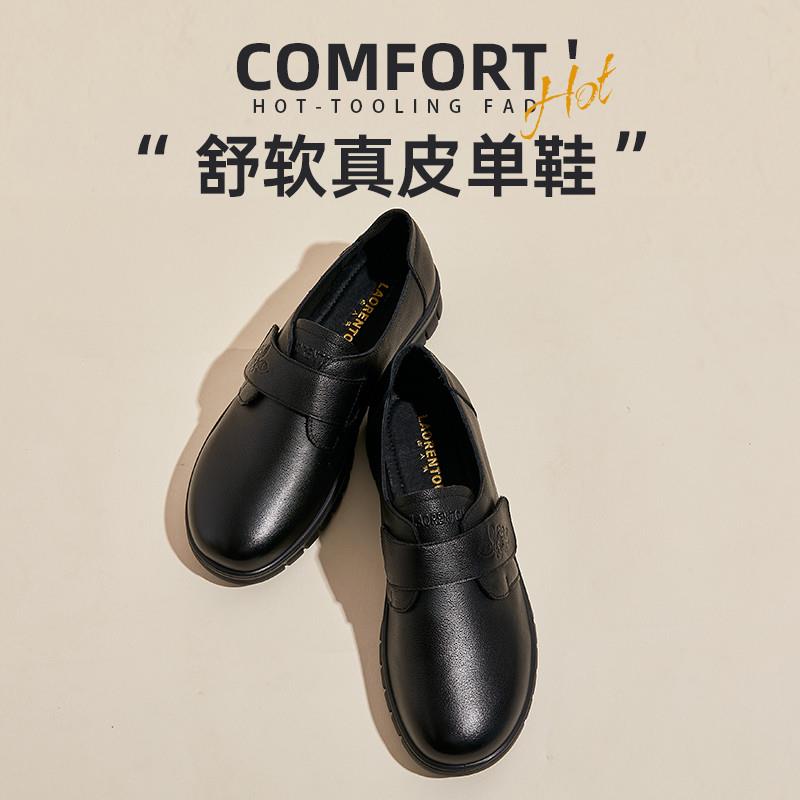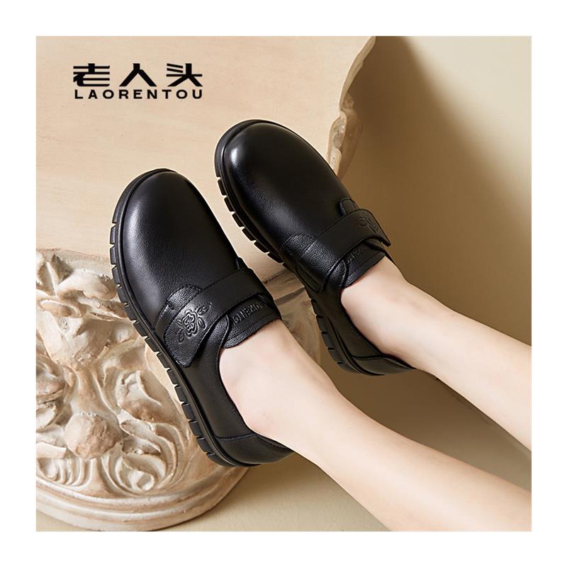 正品老人头妈妈鞋2025春夏新款真皮软底中老年舒适平底单鞋奶奶皮