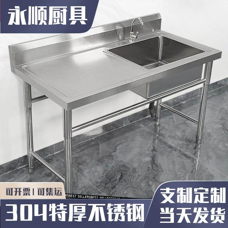 304不锈钢水槽厨房支架商用饭店洗衣台洗菜盆洗碗池带平台洗刷盆