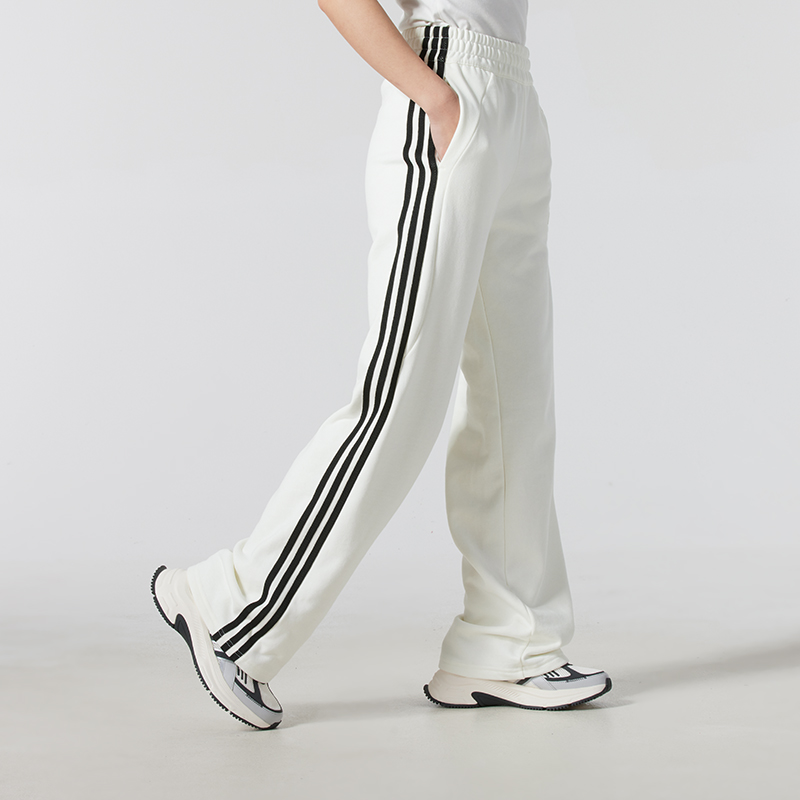 阿迪达斯运动裤女秋季新款白色直筒宽松美式休闲针织阔腿裤女裤子