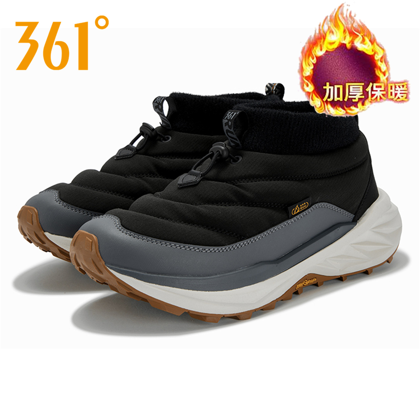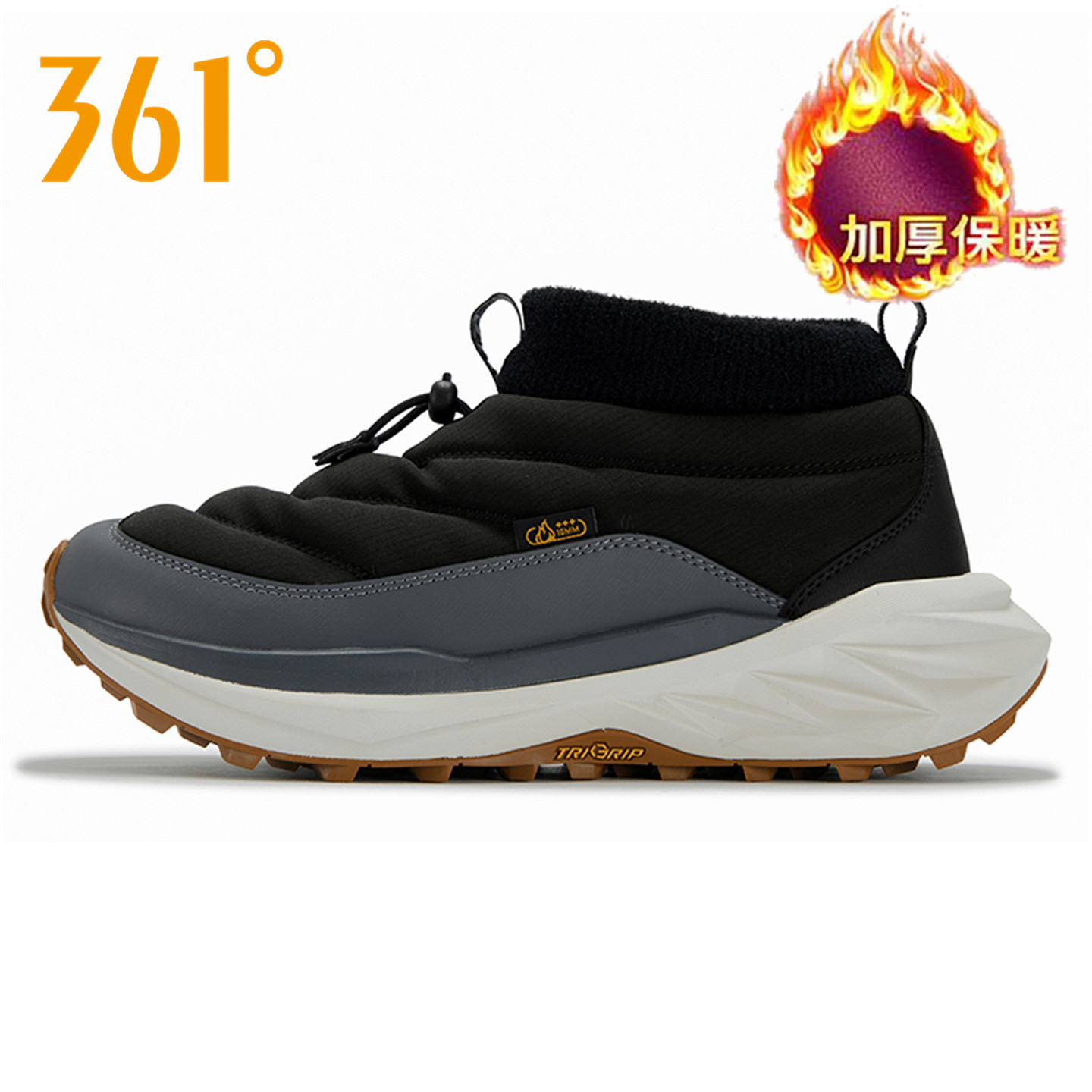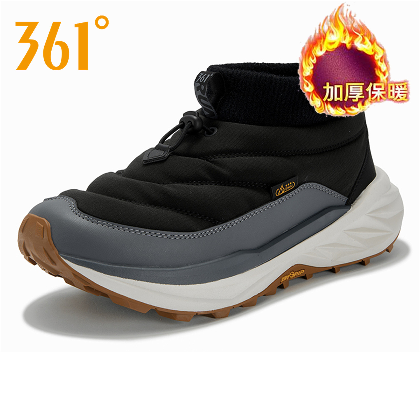 361度男鞋一脚蹬懒人棉鞋2025冬季新款官方正品黑色保暖雪地靴男