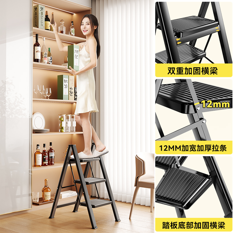 奥鹏家用多功能折叠伸缩梯子安全加厚铝合金人字梯三步楼梯小梯凳