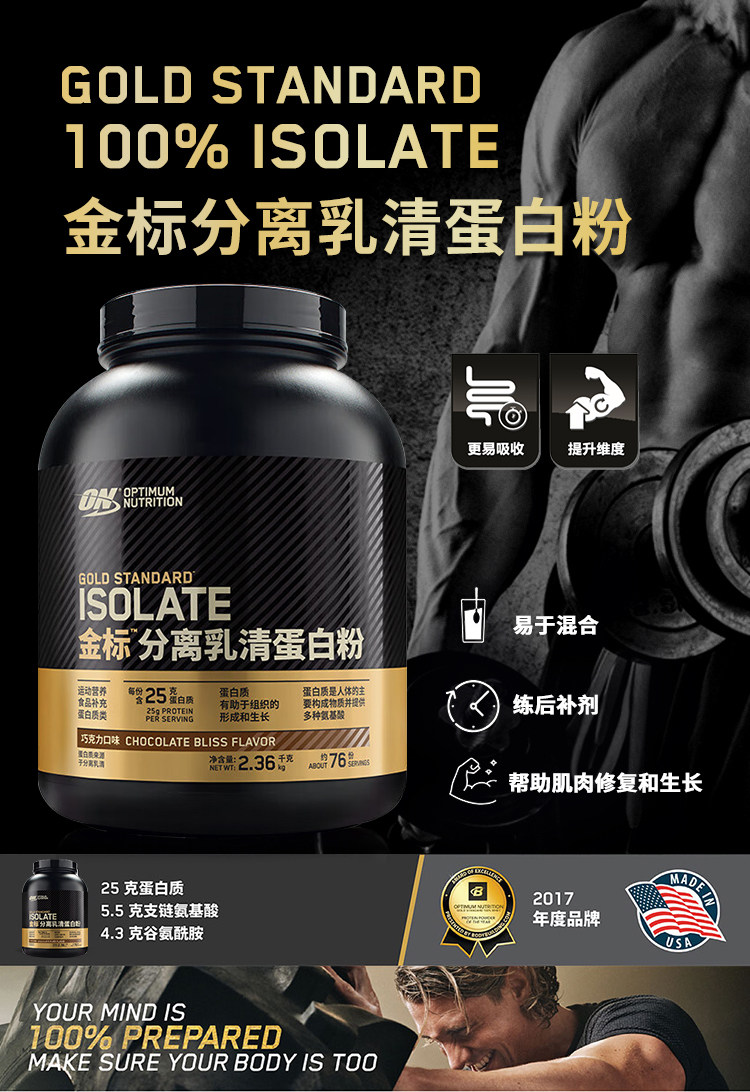 美国ON奥普帝蒙金标分离乳清蛋白粉水解蛋白Optimum Whey ISOLATE