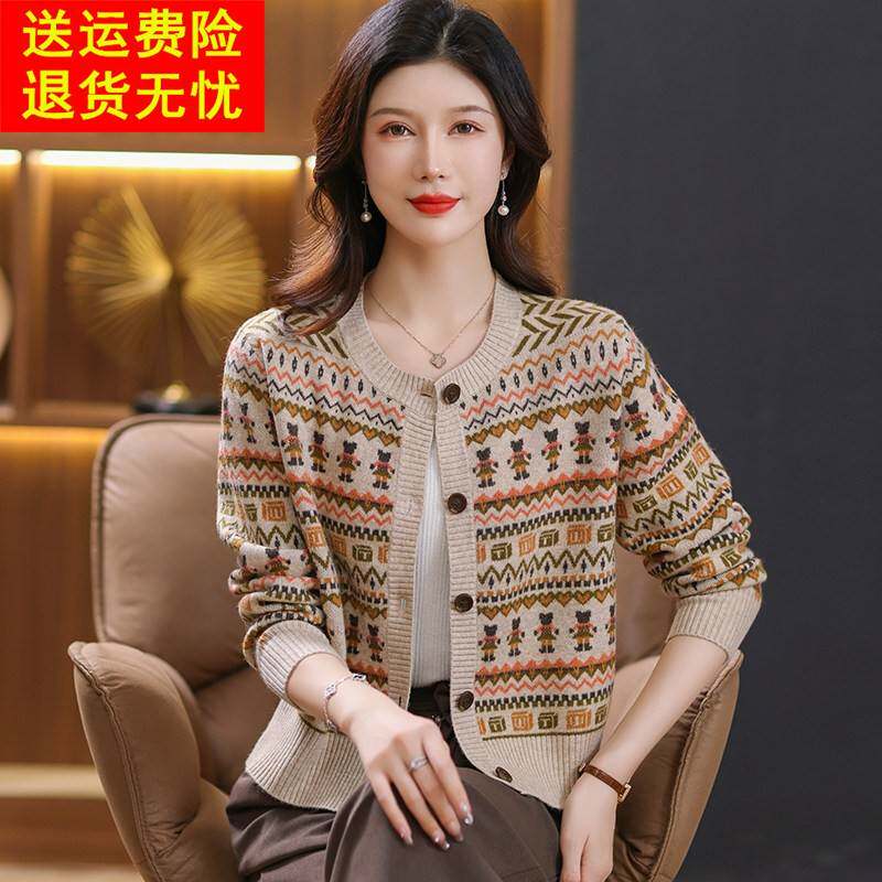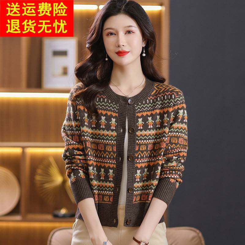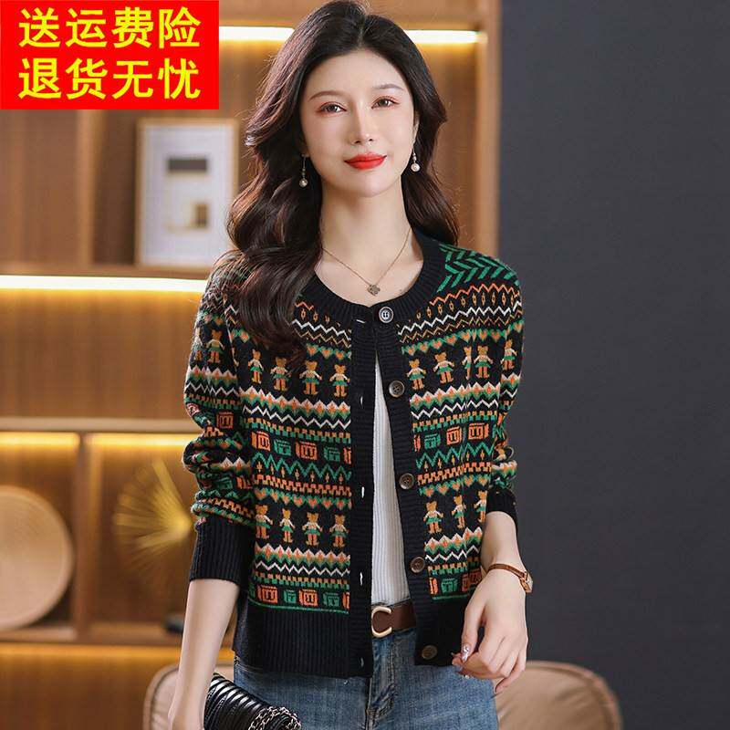 鄂尔多斯市羊毛衫高腰短款毛衣外套女士春秋新款羊绒针织开衫外搭