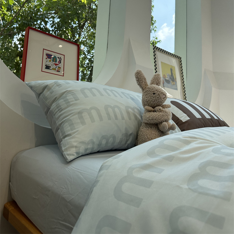 ins蓝色字母床上四件套全棉纯棉1.5m1.8宿舍被套床单三件套少女心