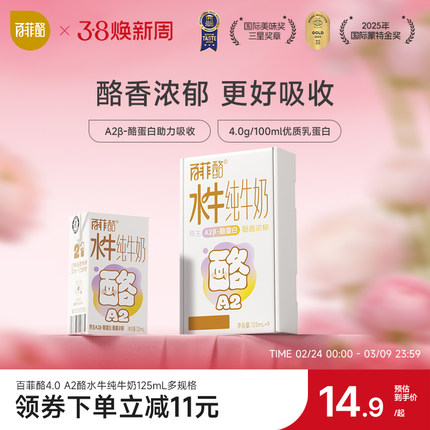 百菲酪A2β-酪蛋白4.0g乳蛋白水牛纯牛奶多规格儿童营养牛奶广西