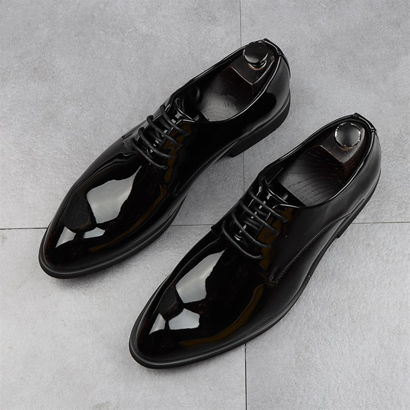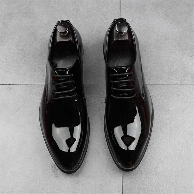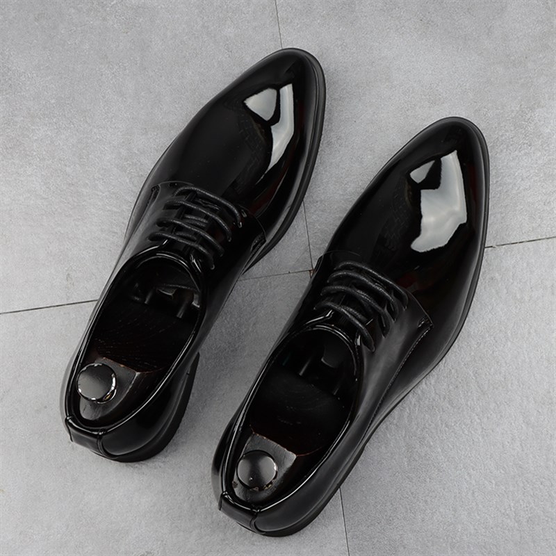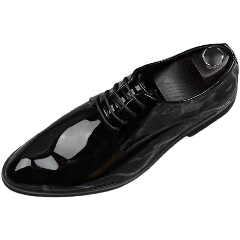 亮面尖头皮鞋男韩版潮流英伦内增高新郎伴郎婚鞋漆皮发型师男鞋黑