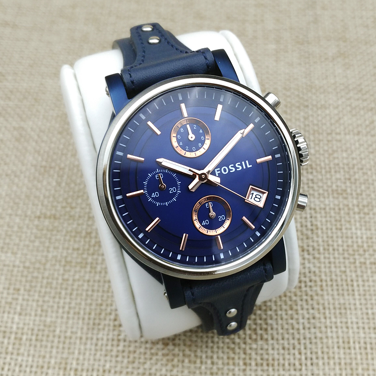 Fossil三眼计时石英表女表