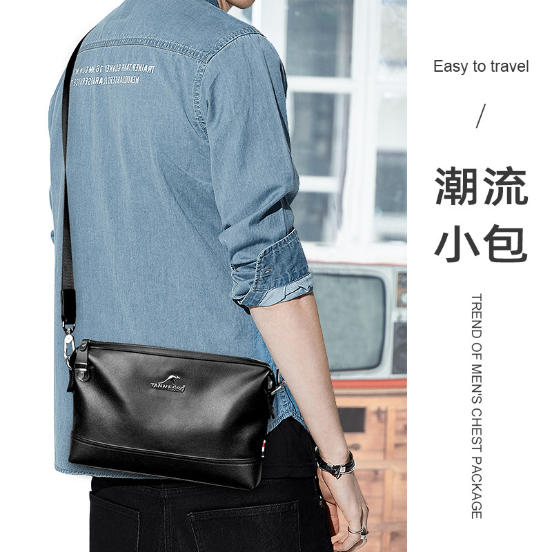 tanmesso真皮单肩斜挎包男休闲小包男士手包牛皮多功能背包男包