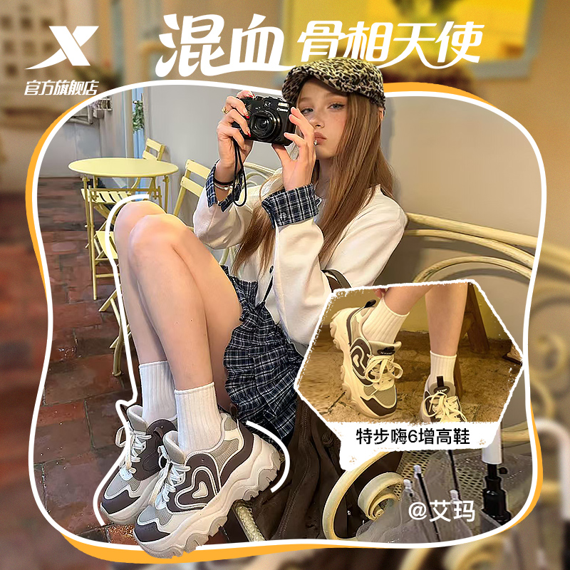 特步嗨6鞋|厚底老爹增高休闲鞋