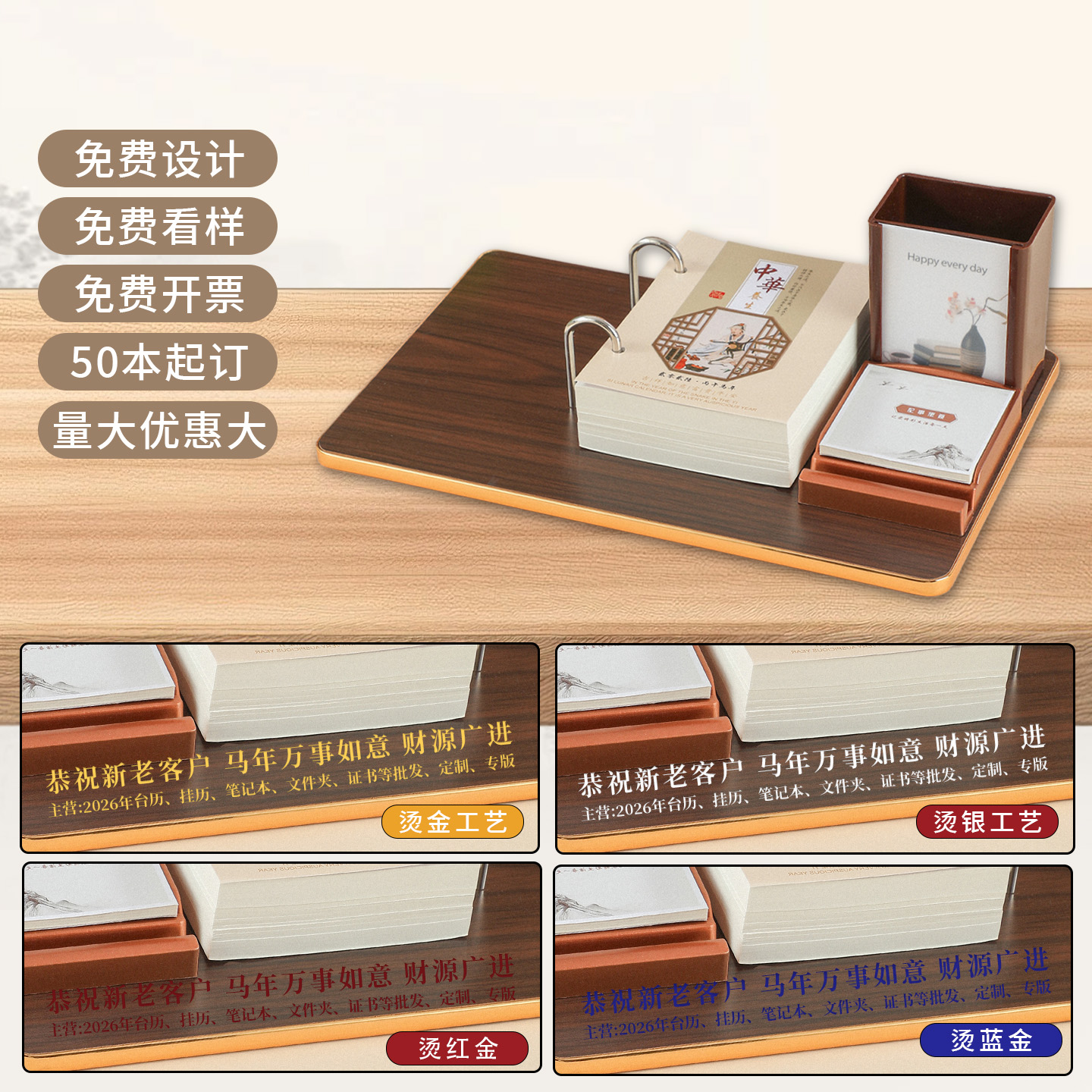 2026年台历定制新款创意马年商务办公桌面摆件带笔筒手撕一日一页黄道吉日黄历工作单页日历记事本定制logo