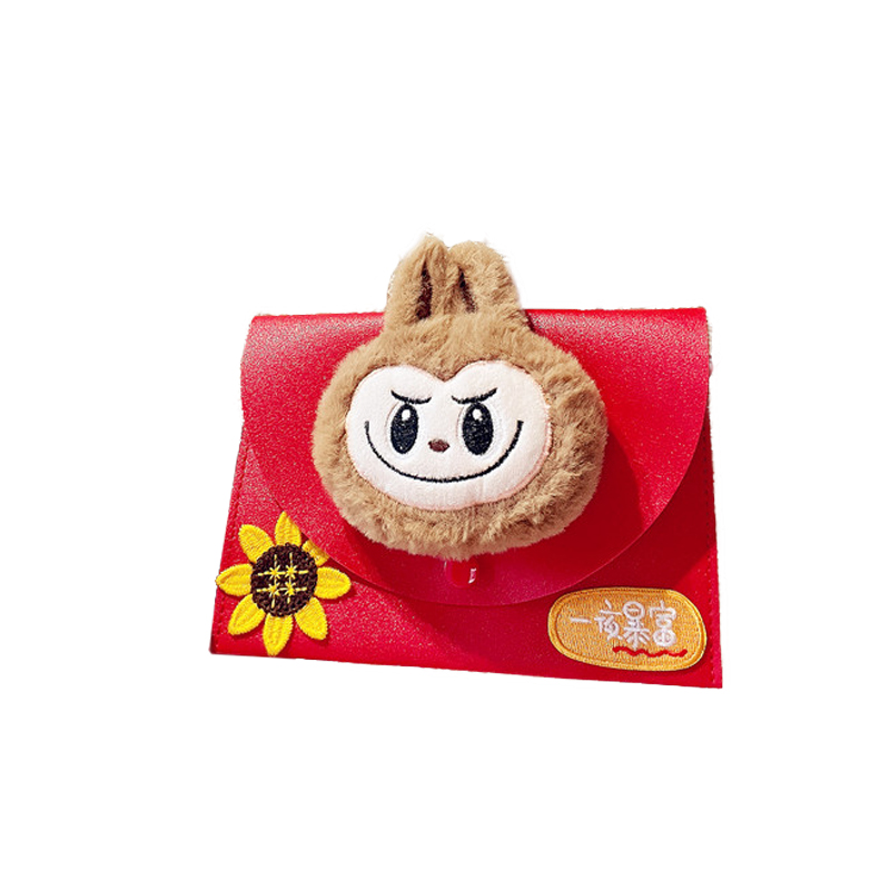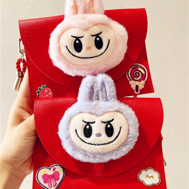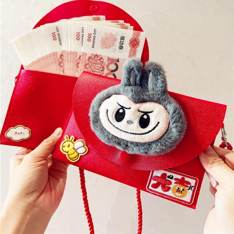 华人春节新年压岁钱毛绒收纳包皮质利是封带挂绳横款竖款万元红包