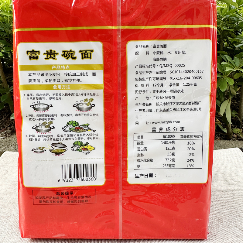 富贵碗面美之泉韶关1.25kg包丹霞面挂面早餐广东韶关特产汤面