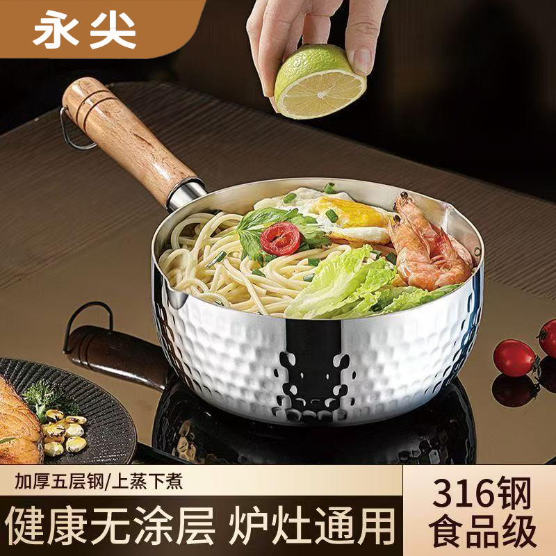 永尖316雪平锅家用食品级无涂层宝宝辅食奶锅煮泡面汤锅电磁炉