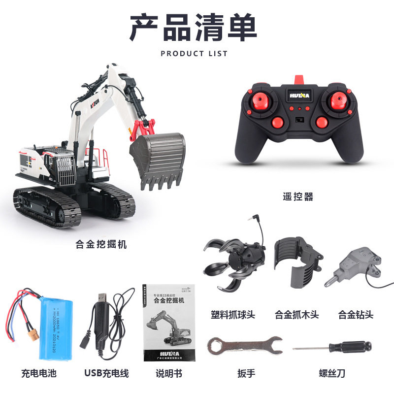 汇纳22通1:14合金丝杆550遥控挖掘机15通594挖土机玩具远距离炫酷