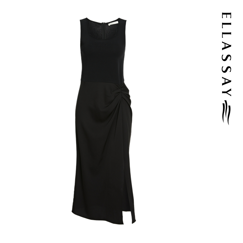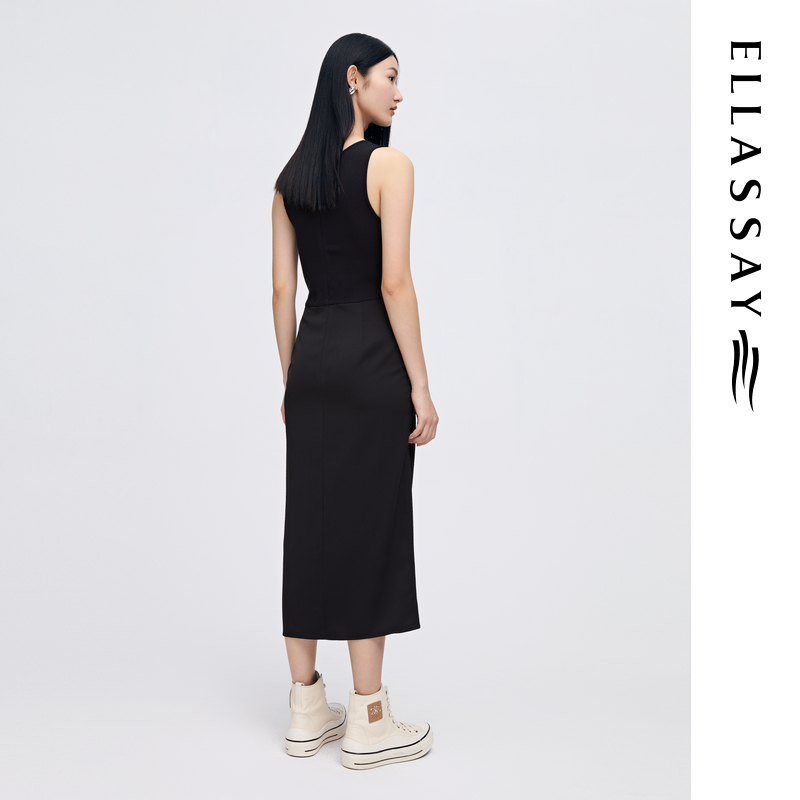 歌力思奥莱春夏新款高级质感拽姐风小黑长裙连衣裙女Y042