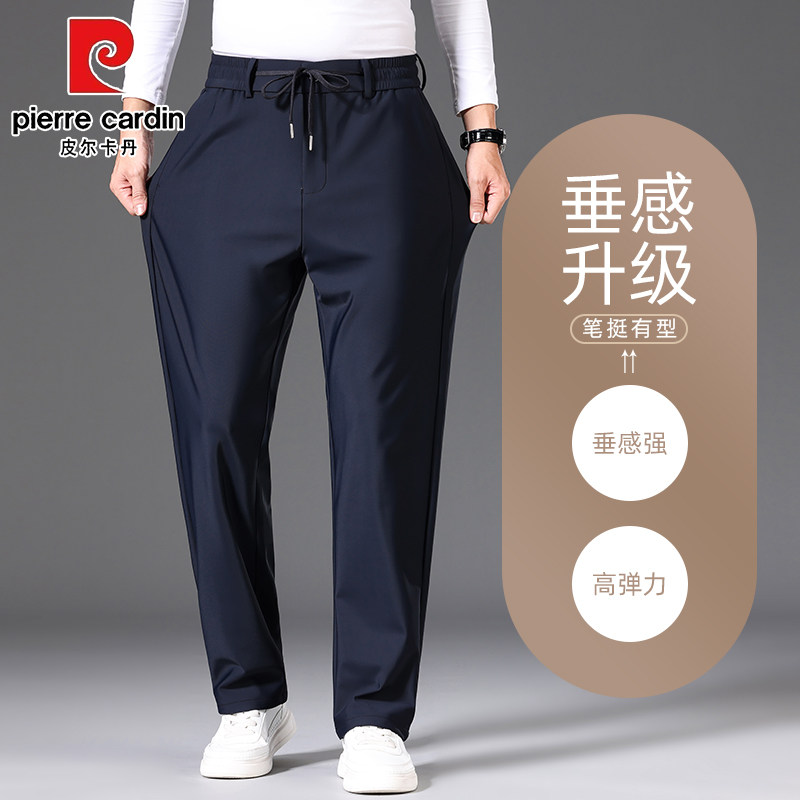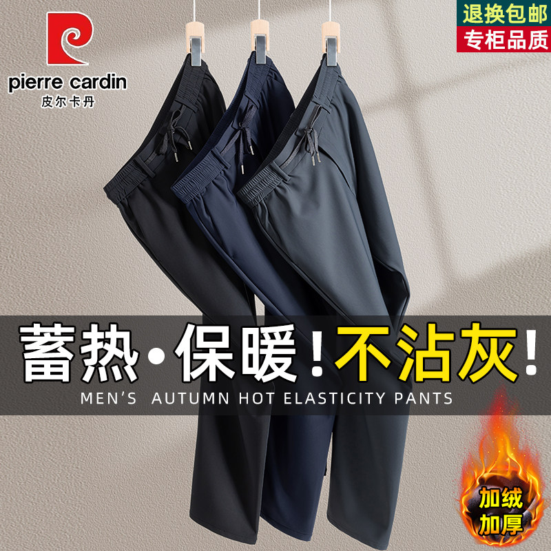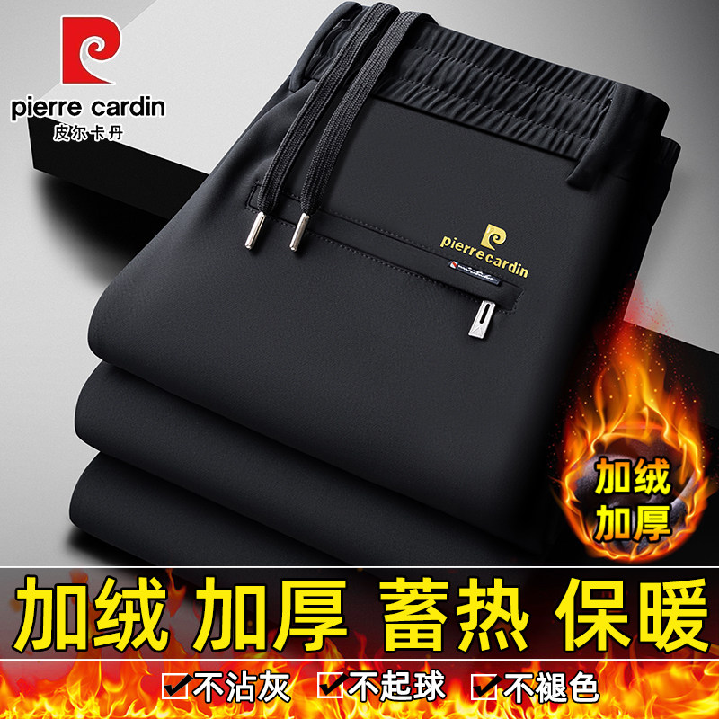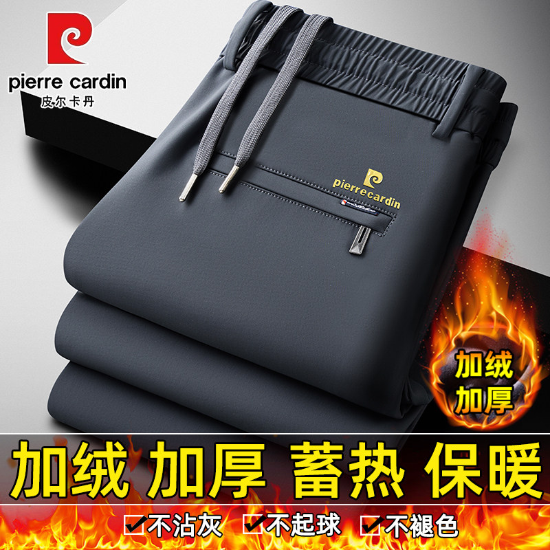 皮尔卡丹正品加绒加厚男士休闲裤高弹力松紧腰运动裤直筒宽松男裤