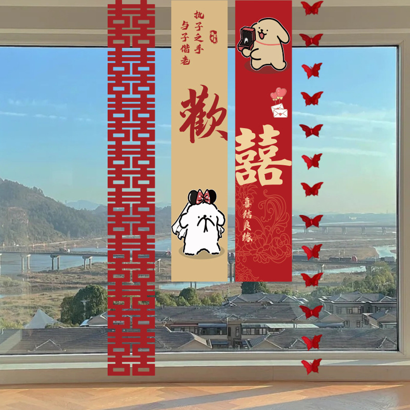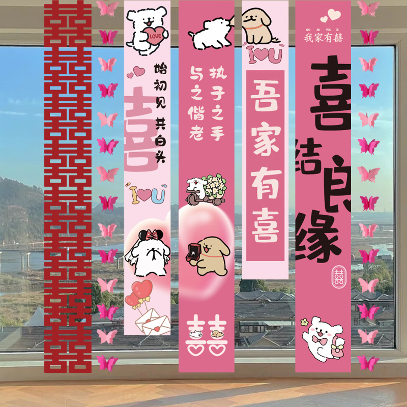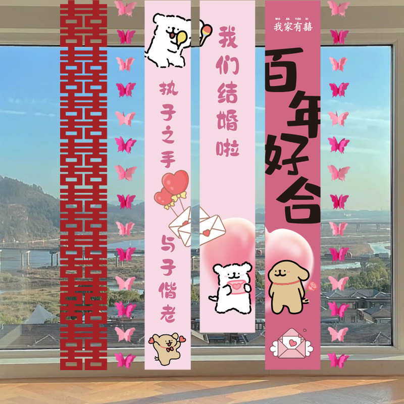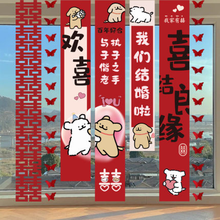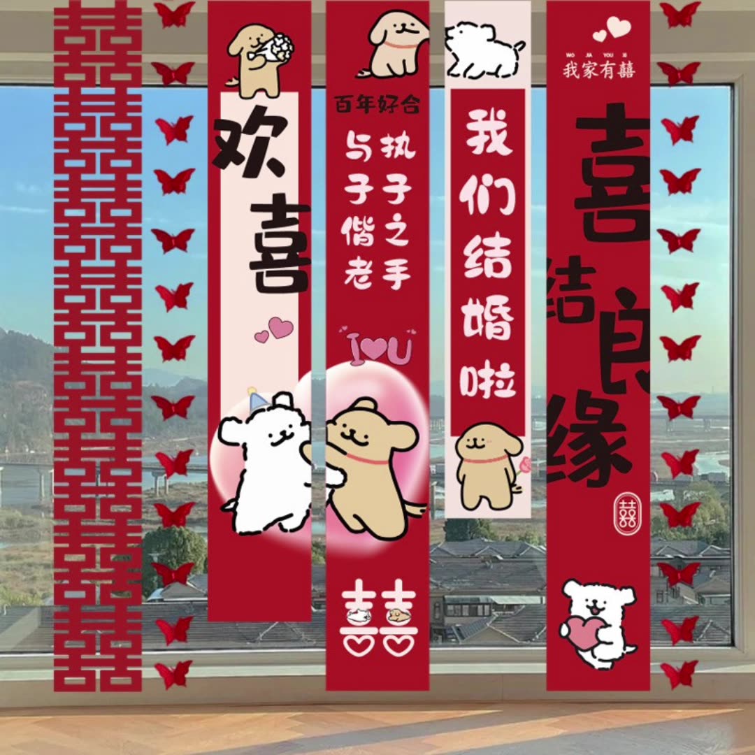 结婚布置婚房装饰线条小狗卡通女方卧室男方新婚房布置大全