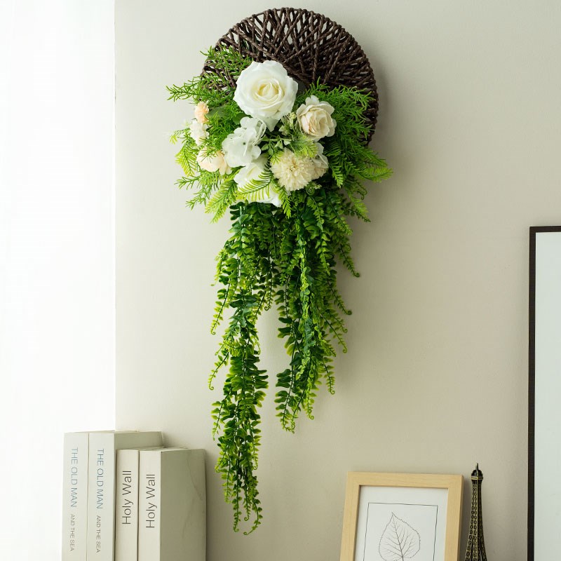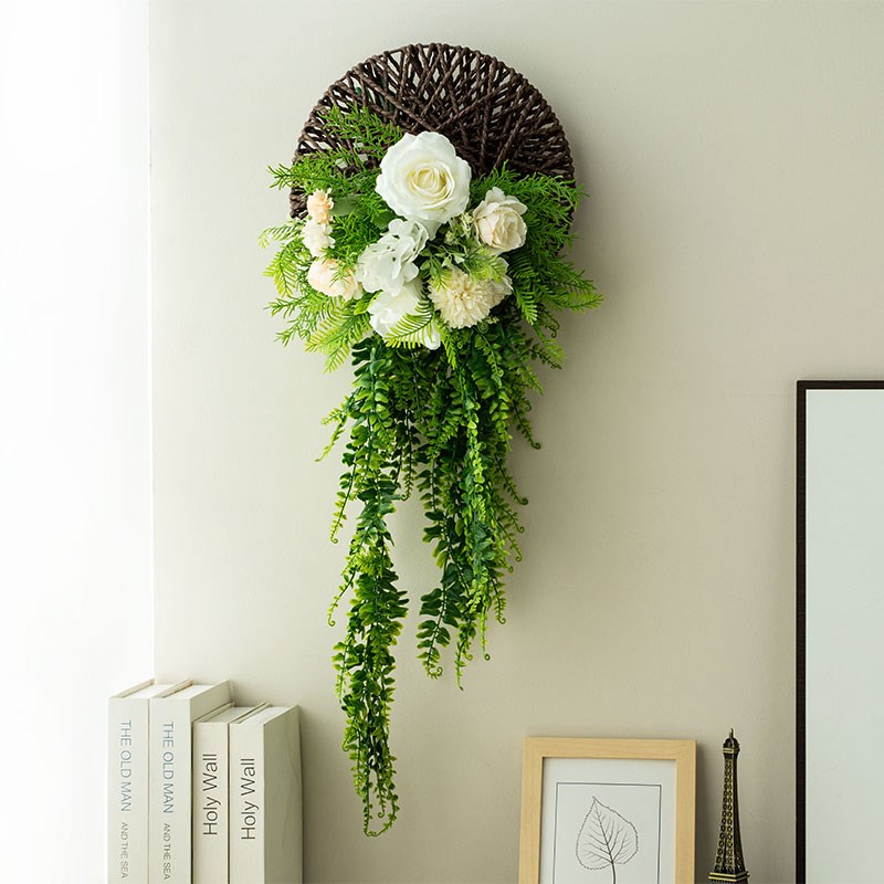 森系小清新仿真玫瑰墙面装饰假花绿植藤条遮挡客S厅高级感轻奢壁