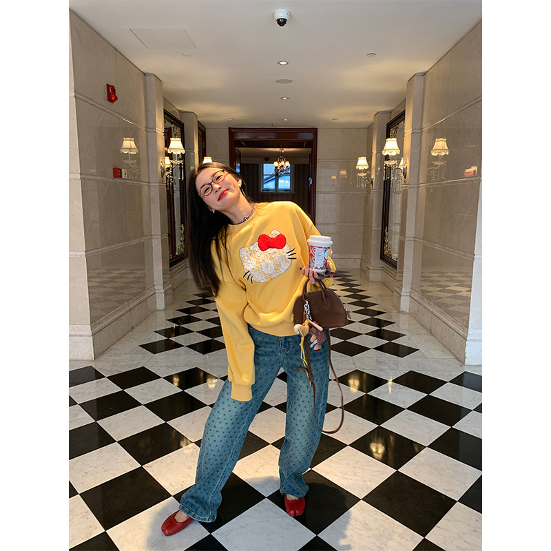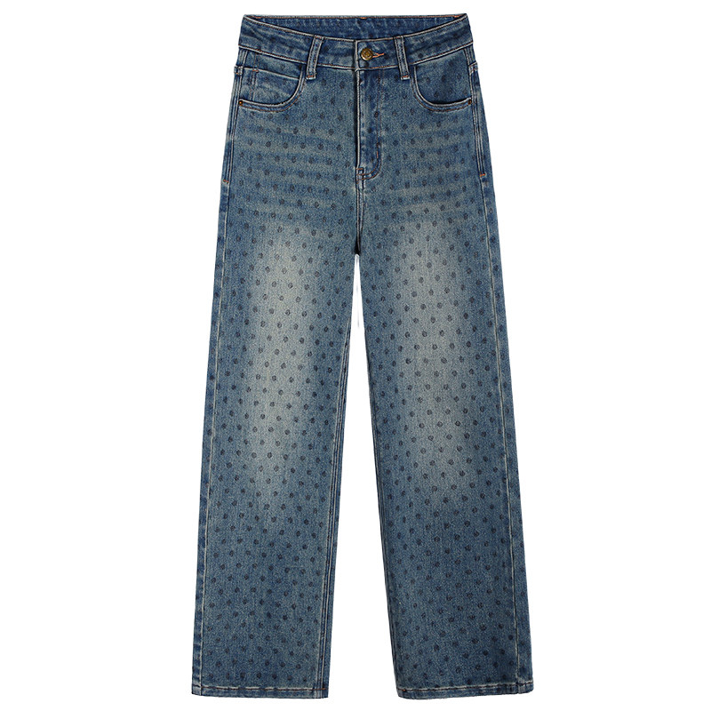落落狷介 印花牛仔裤2025年新款女小个子波点阔腿裤高腰冬季裤子