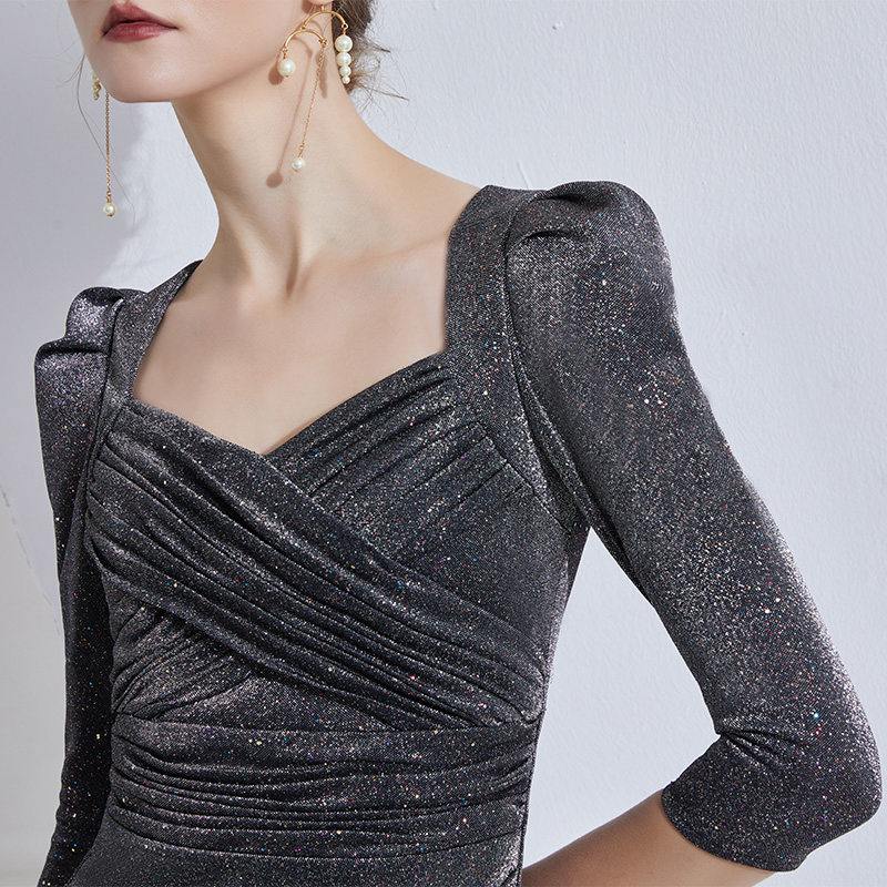 创意狐礼服2025正流行轻奢法式风高级感宴会纯色中长款优雅连衣裙