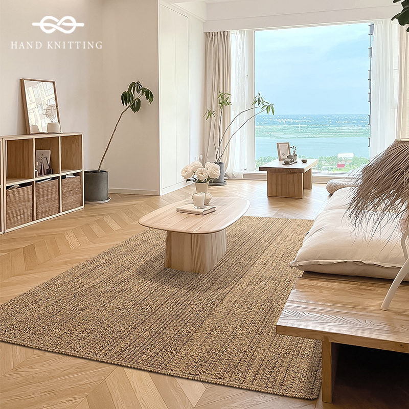 手工黄麻编织地毯家用客厅茶几沙发垫书房地垫卧室床边毯定制地垫