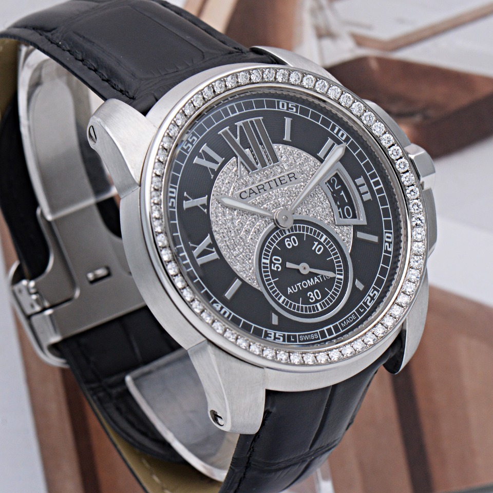 [9.8新]卡地亚卡利博内圈带钻后镶钻自动机械手表男表