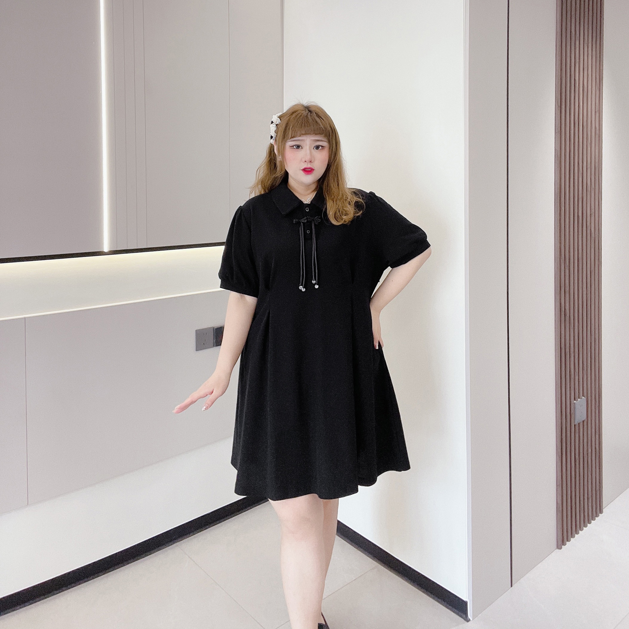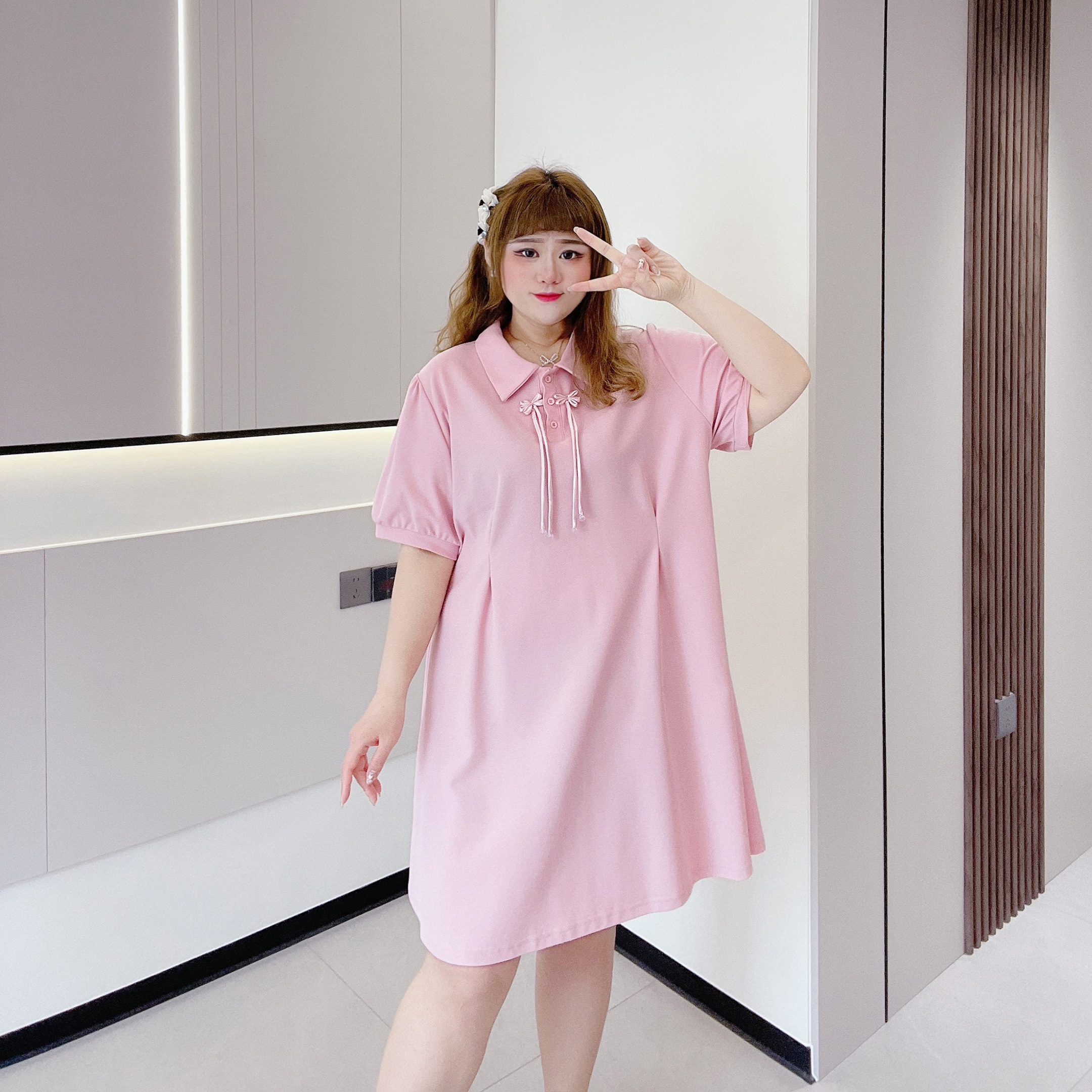 260斤国风减龄Polo领连衣裙清新显瘦胖mm大码女装吊坠A字收腰短裙