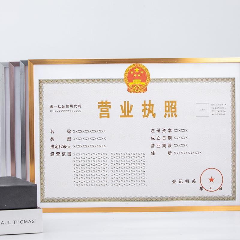 柚木色铝合金拉丝证件相框 A3营业执照框正副本工商税务A4证书框