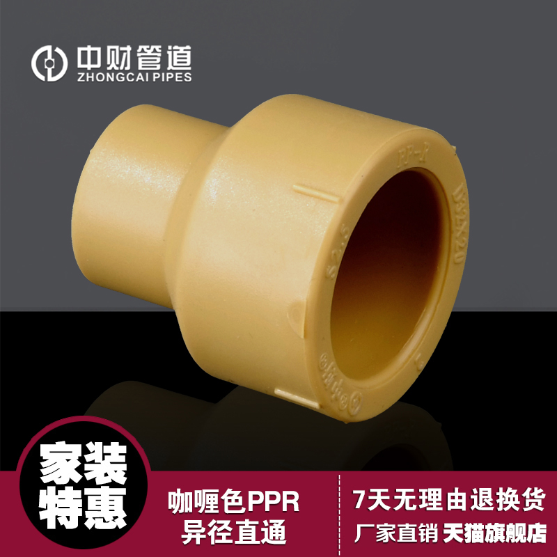 中财管道咖喱色PPR冷热给水管配件异径直通大小头异径接头