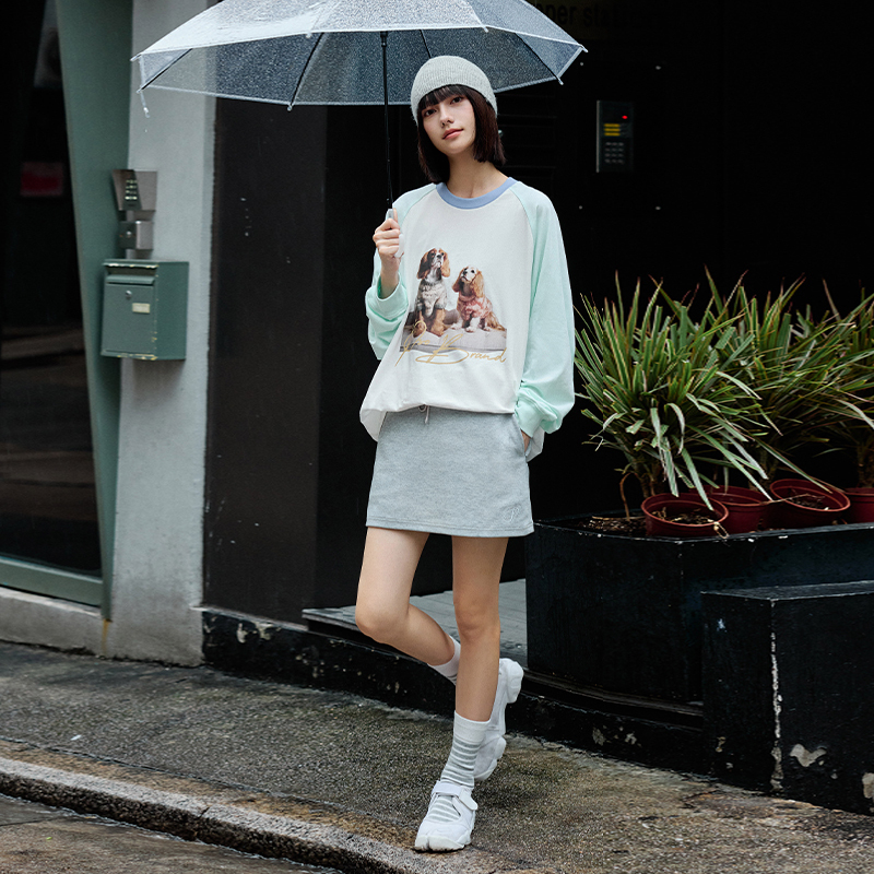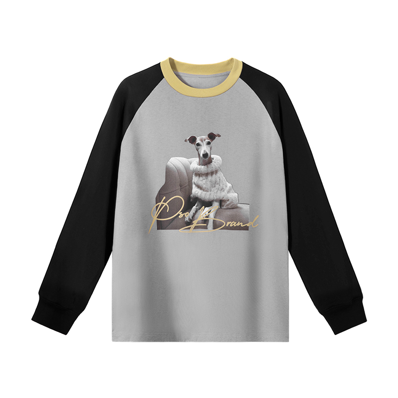 PSO Brand男装女装针织可爱小狗撞色插肩春季百搭长袖T恤上衣外穿