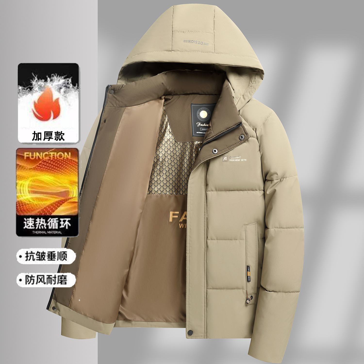 冬季中年男士连帽棉衣爸爸装加厚保暖棉服外套中老年男装棉袄上衣