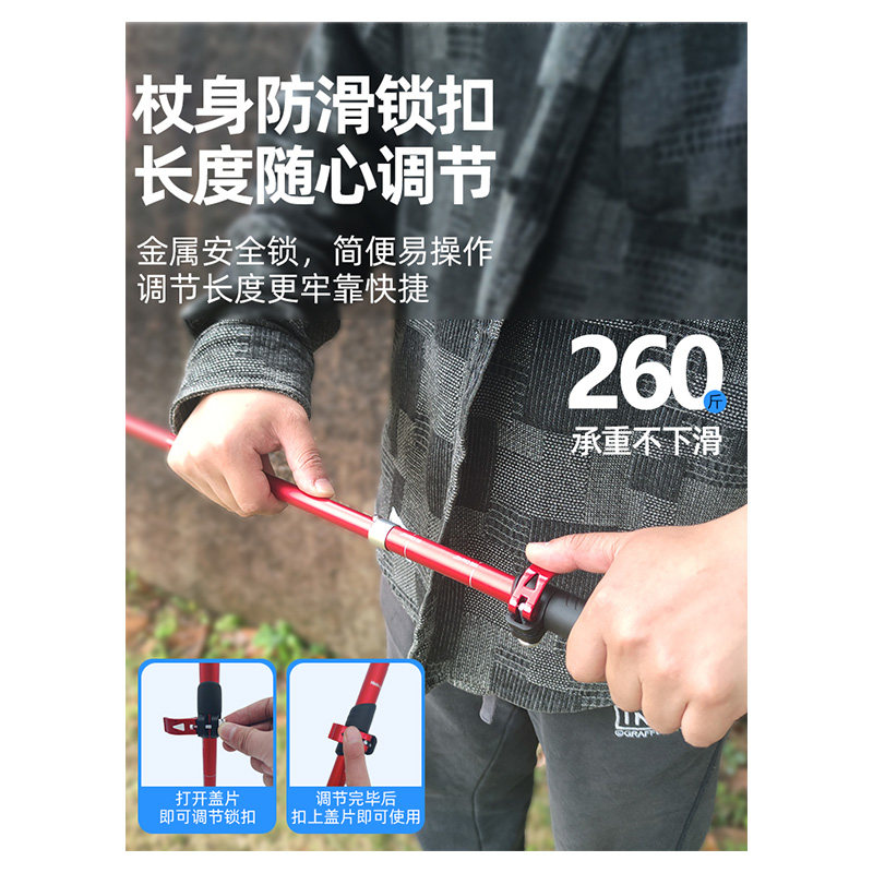 登山杖户外徒步杖超轻7075铝合金可伸缩折叠碳素爬山手杖登山棍