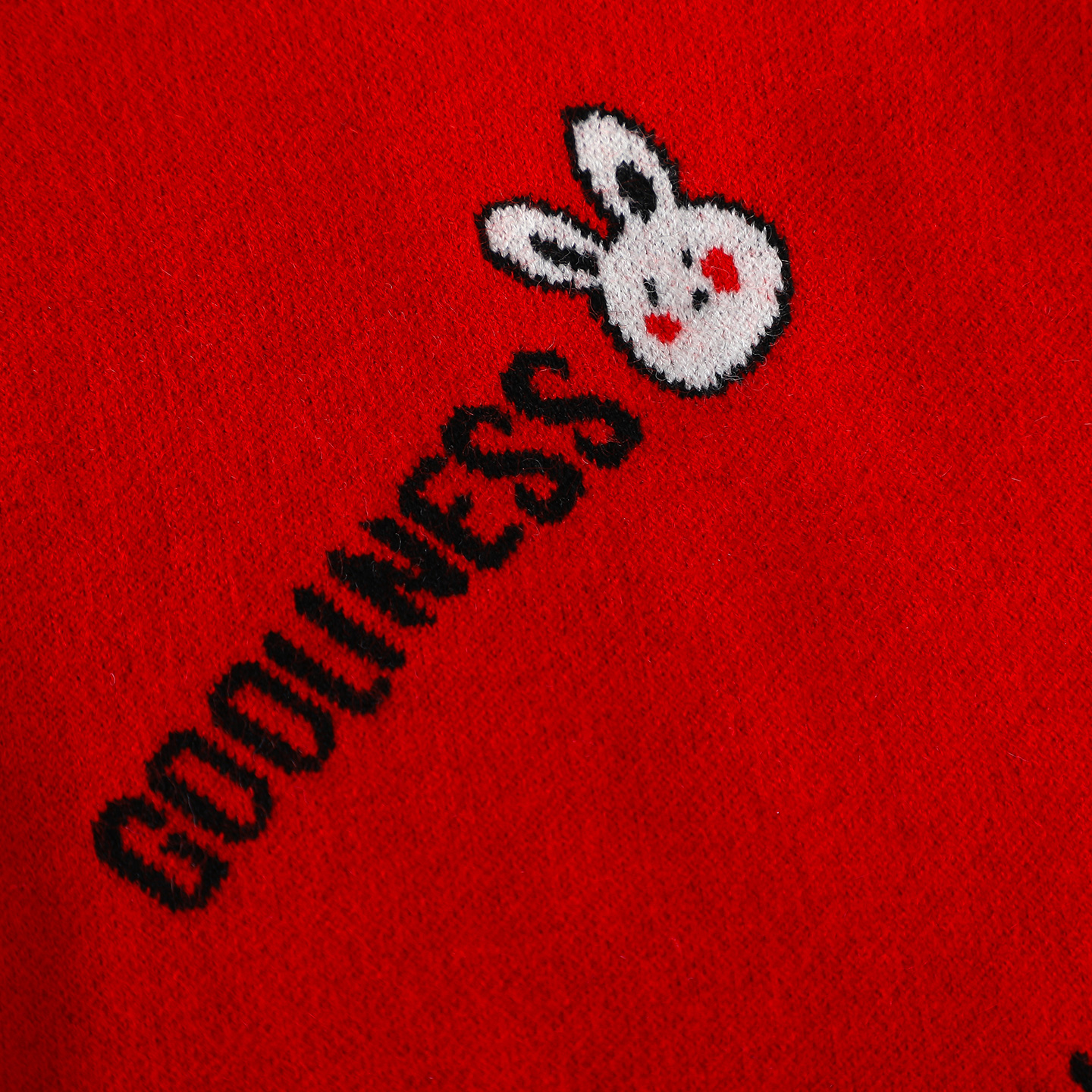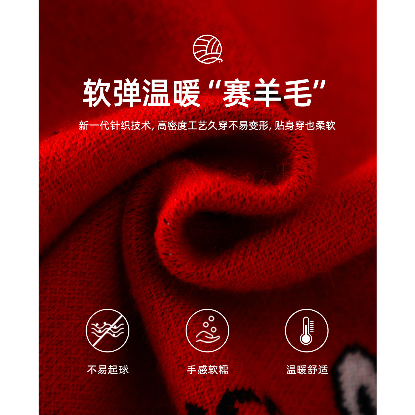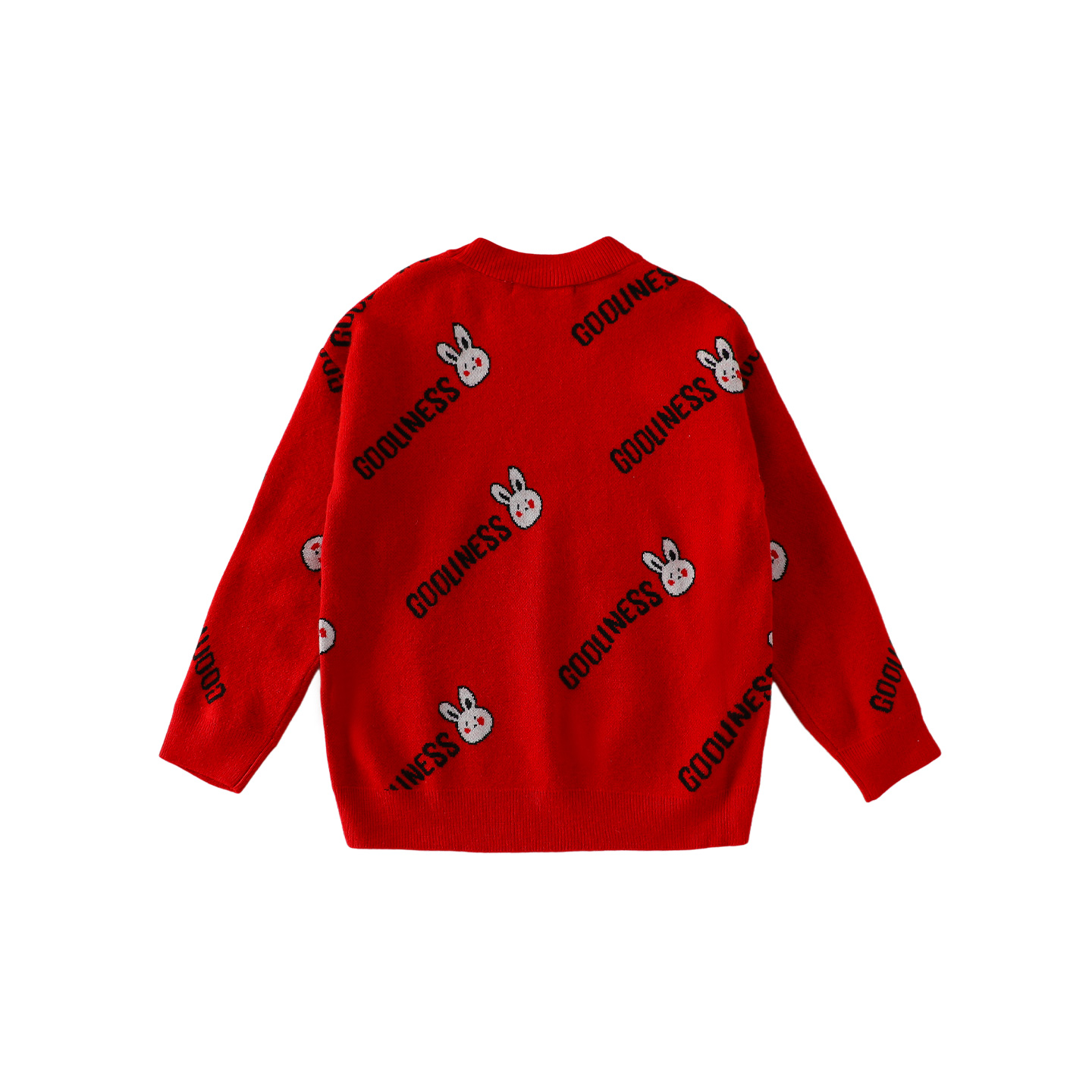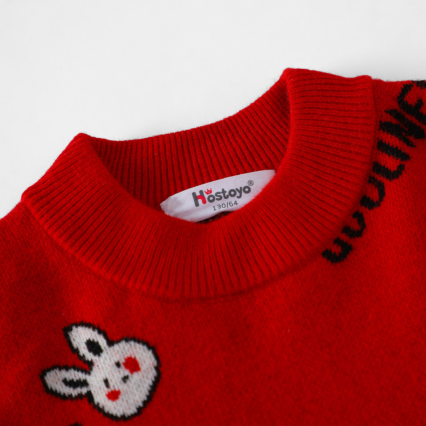 皇室童缘女童卡通字母圆领毛衣2025冬季新款中大童洋气红色上衣