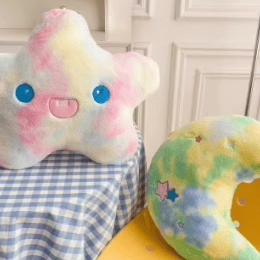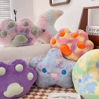 新款炫彩星星抱枕月亮公仔熊掌毛绒玩具靠垫玩偶娃娃儿童生日礼物