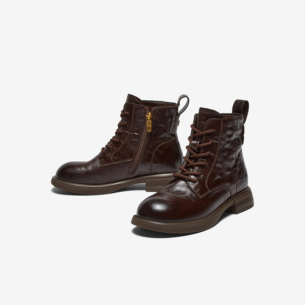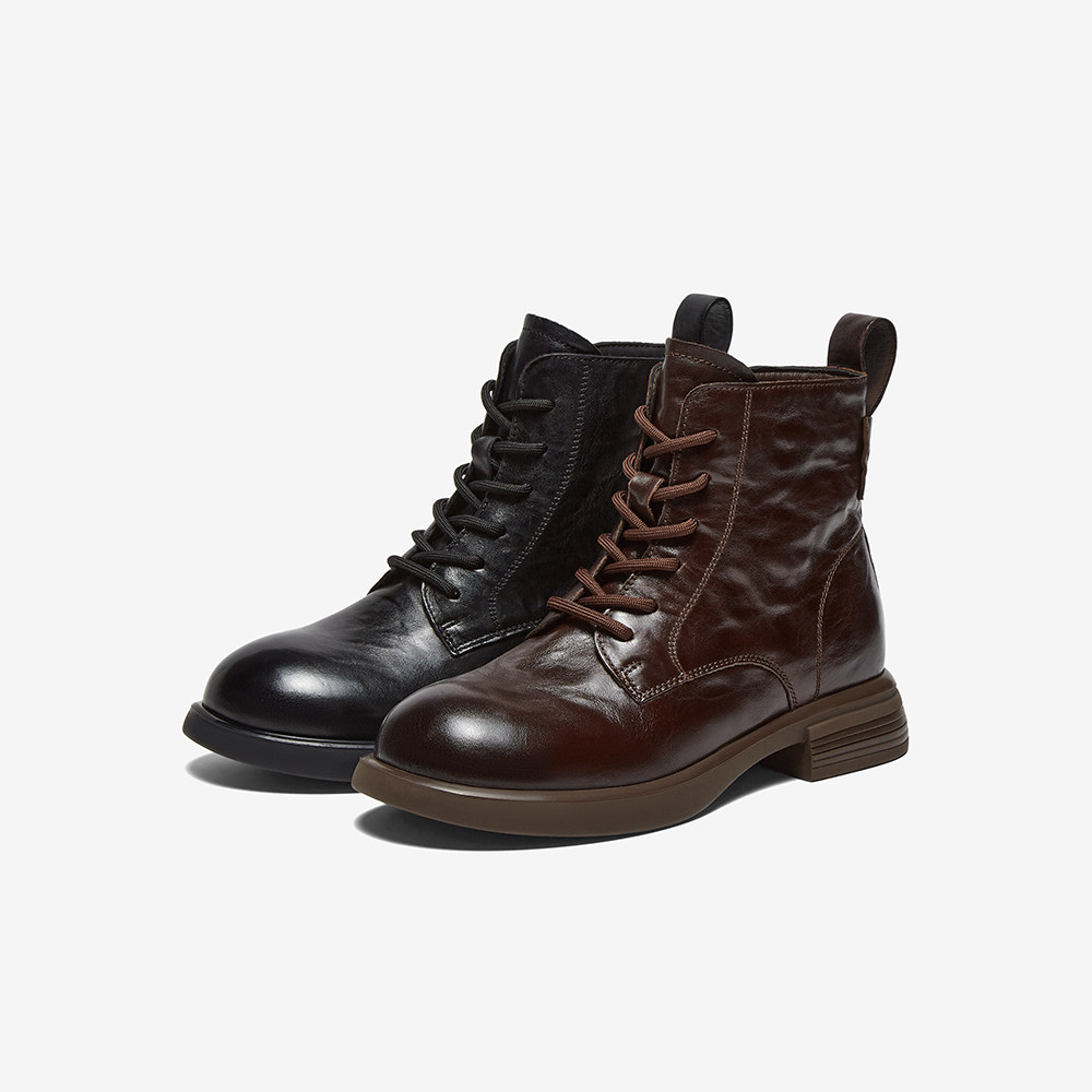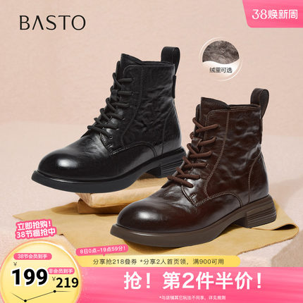 百思图2025冬季新款商场同款马丁靴时尚简约户外女短靴W8268DD5
