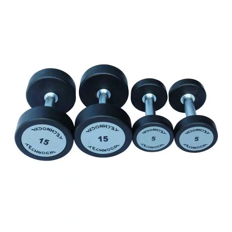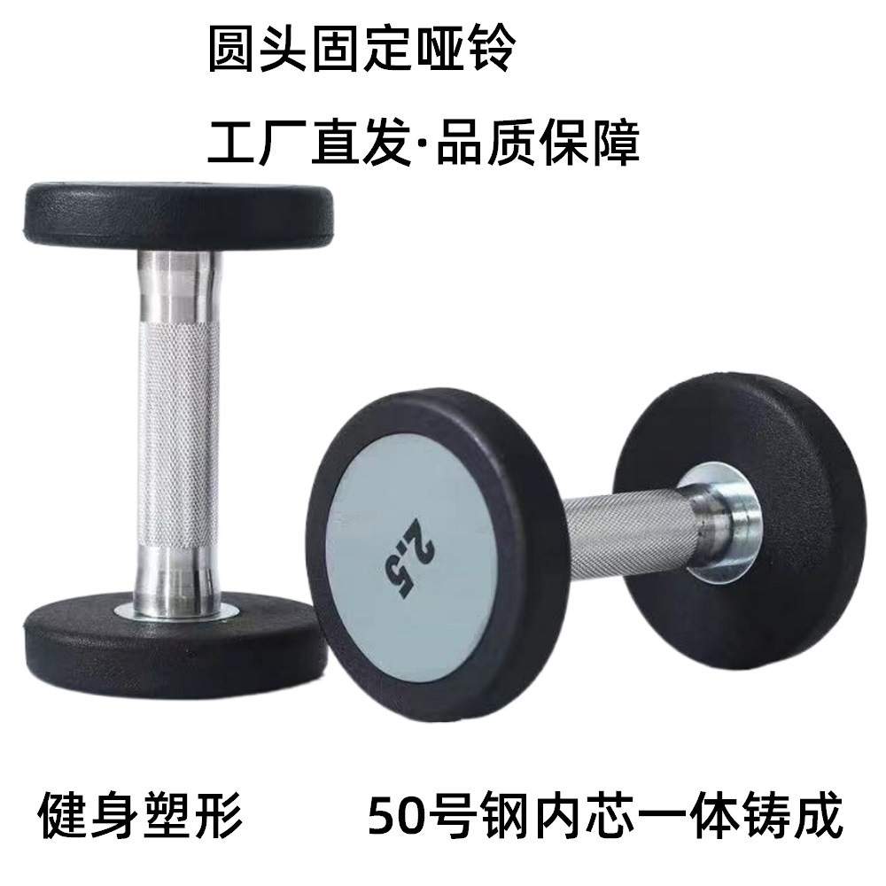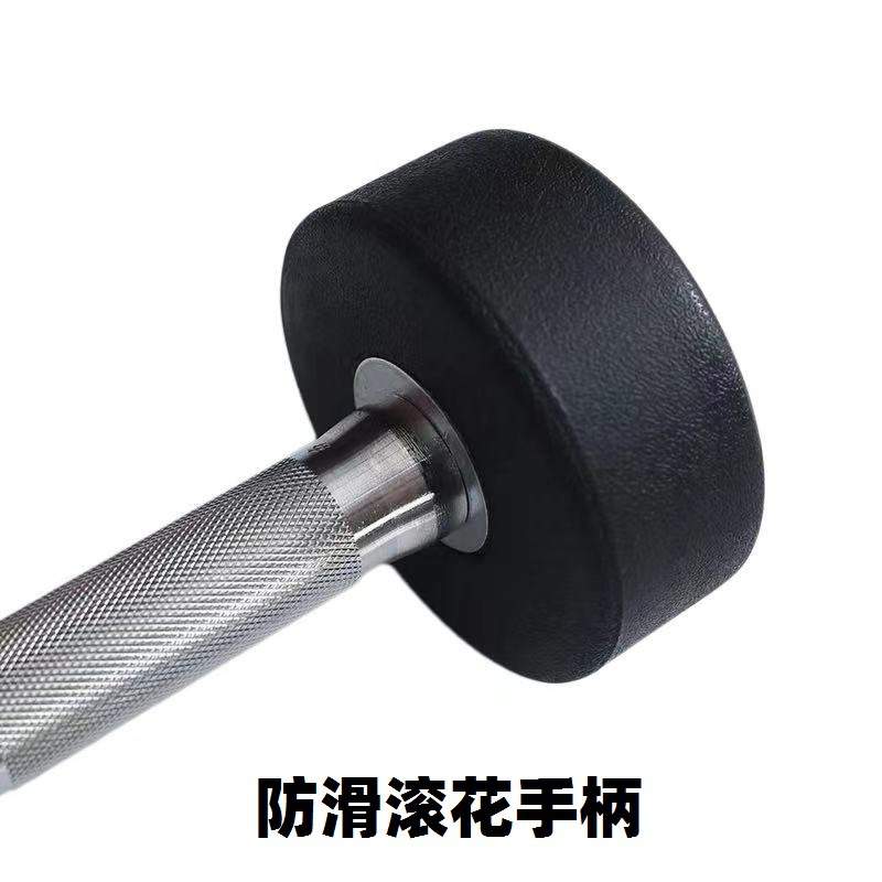 哑铃圆形黑色男士固定商用圆头PU包胶纯钢健身房专用一体焊接50KG