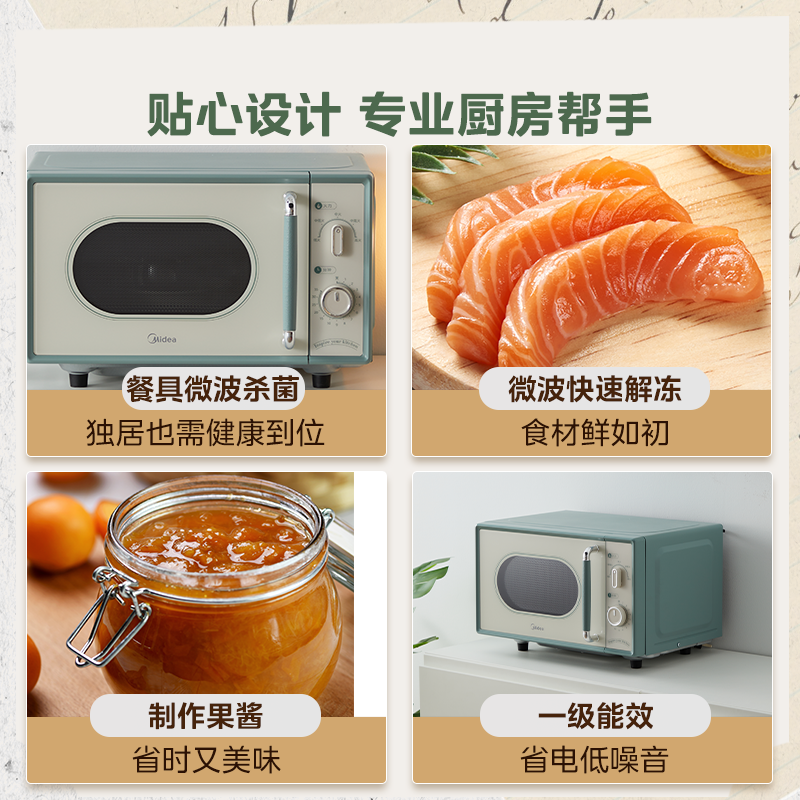政府补贴换新美的小滋味微波炉家用变频平板小型复古官方正品M1G1