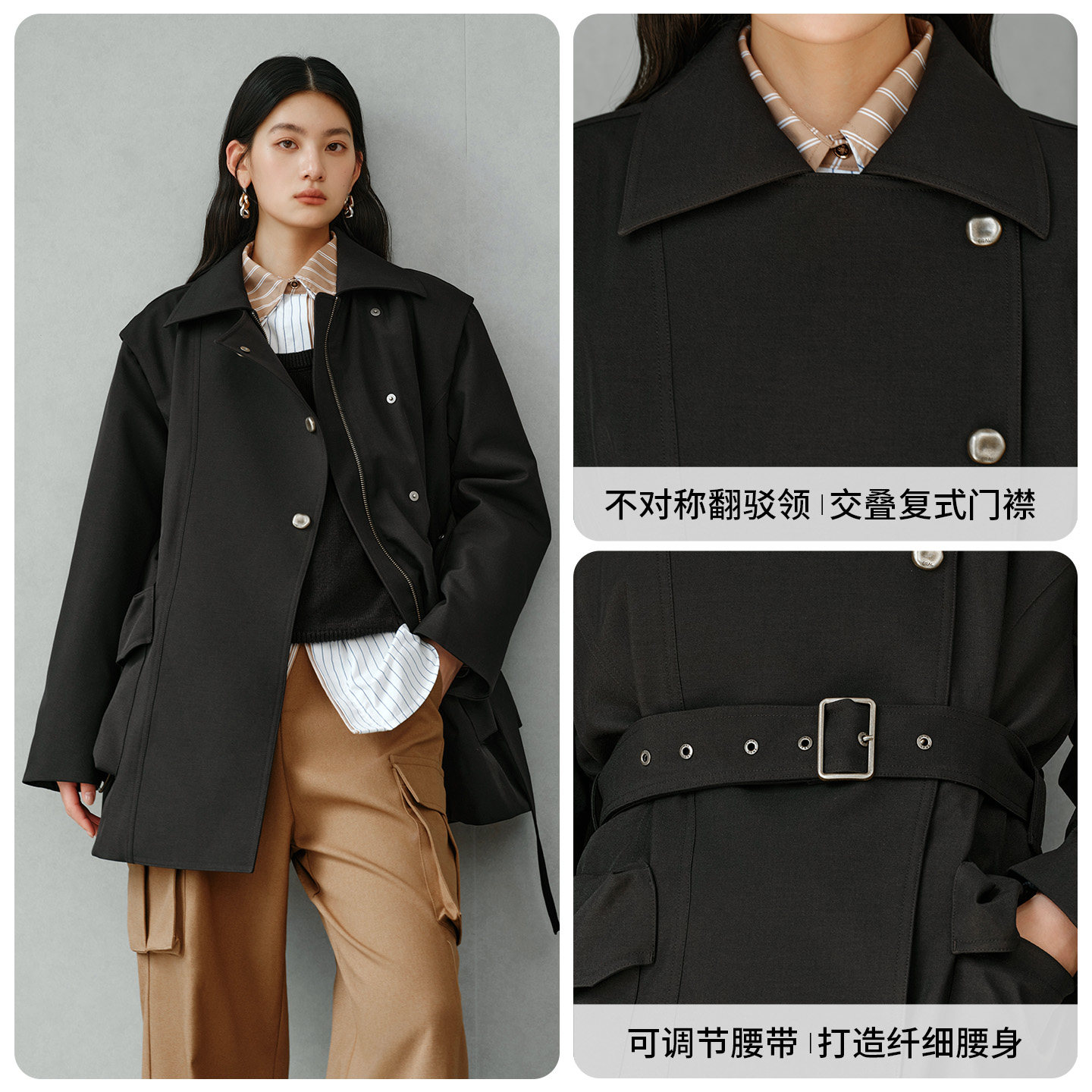 【陈都灵同款】艾莱依2025新款鹅绒服女交叠门襟摩登巴恩风短外套