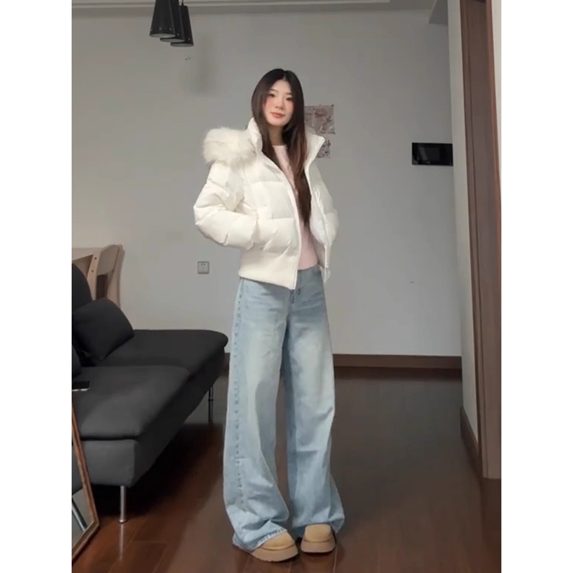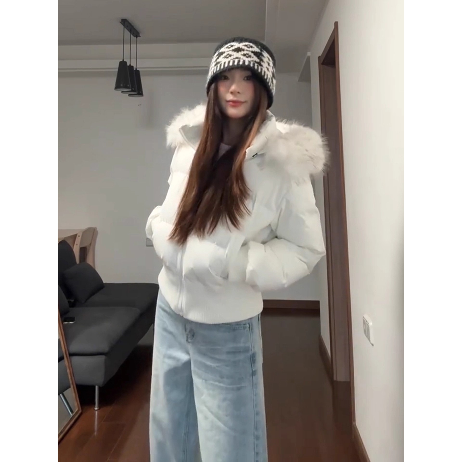 巨好看白色毛领羽绒棉服女冬季新款小个子保暖夹棉袄加厚短款外套