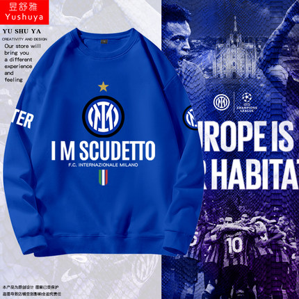 国际米兰队欧冠国米劳塔罗足球迷服圆领卫衣套头薄款男女加绒长袖